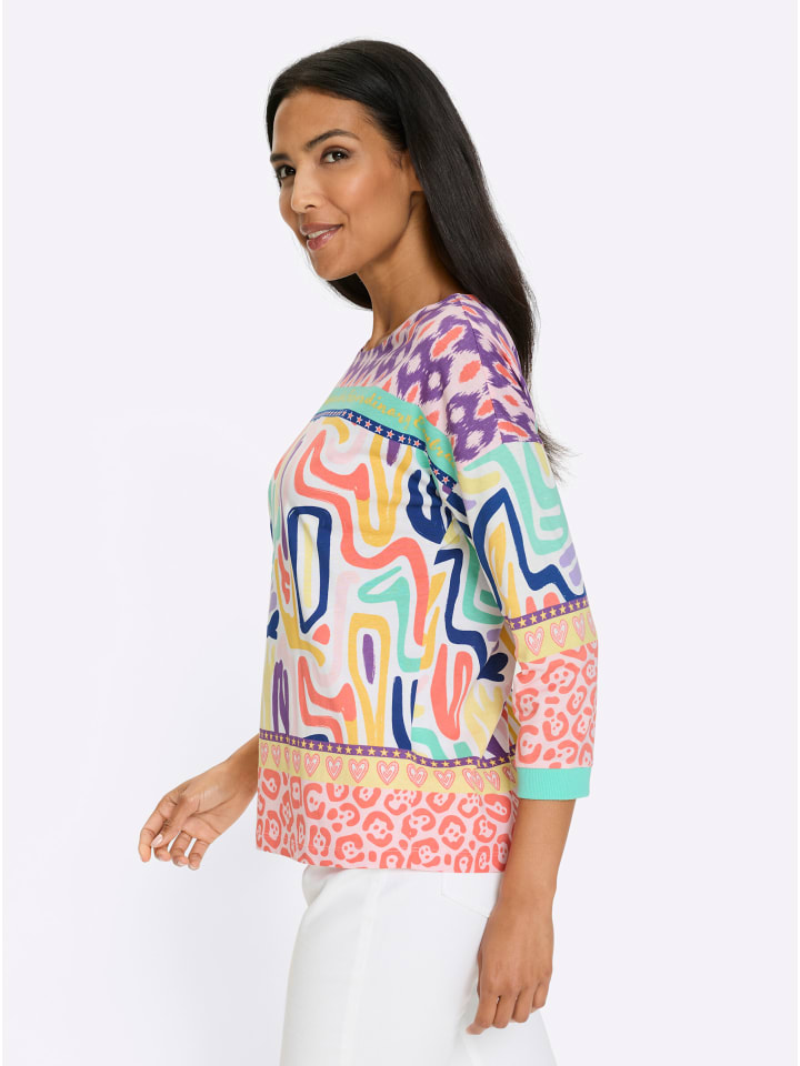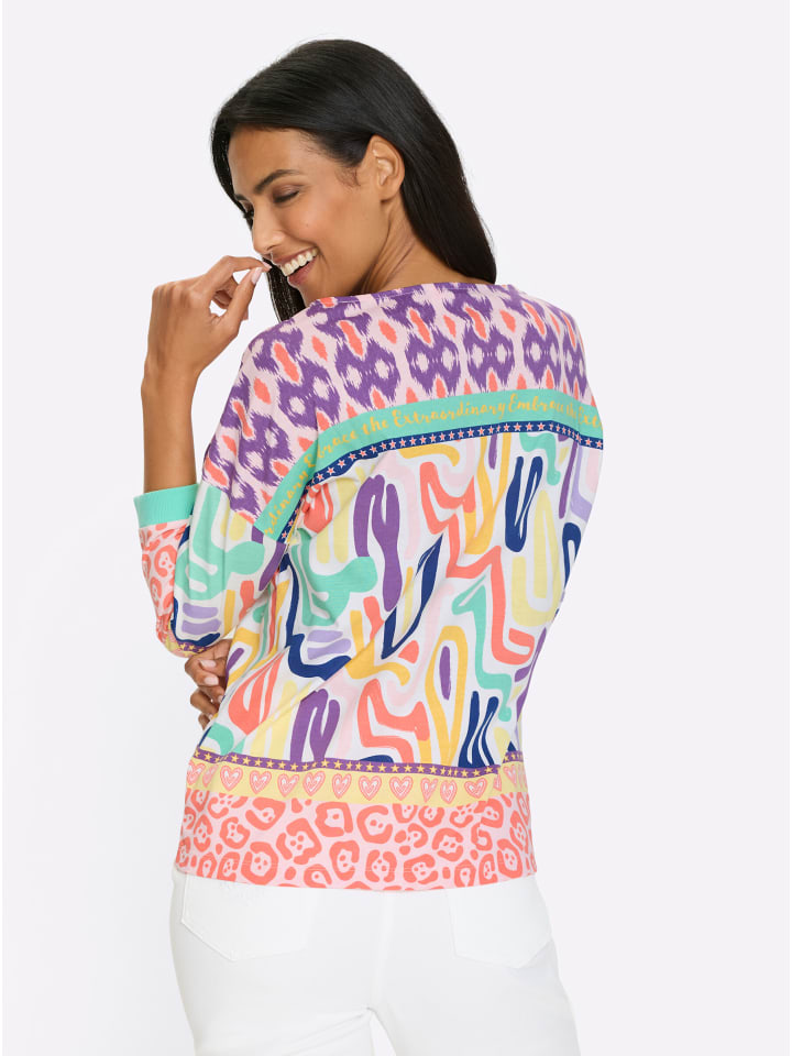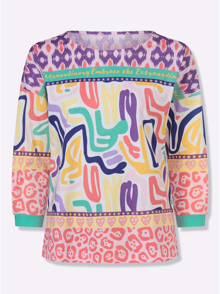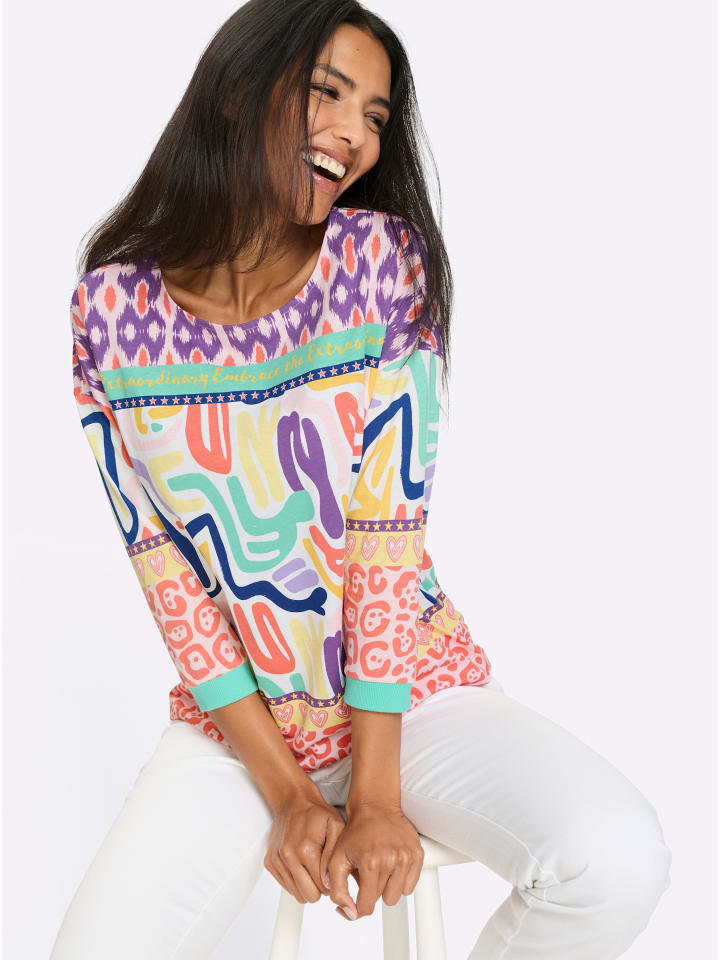 Дерзкая, свежая и жизнерадостная: эта рубашка с рукавами 3/4 - просто необходимая вещь! Она полностью украшена принтами всех наших любимых цветов и разнообразными узорами. Манжеты рукавов - ребристые.