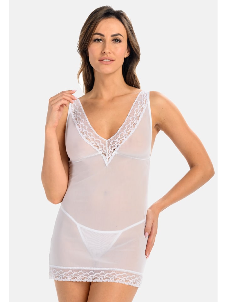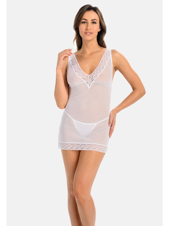 Белая сетчатая ночная рубашка Herty с V-образным вырезом Teyli