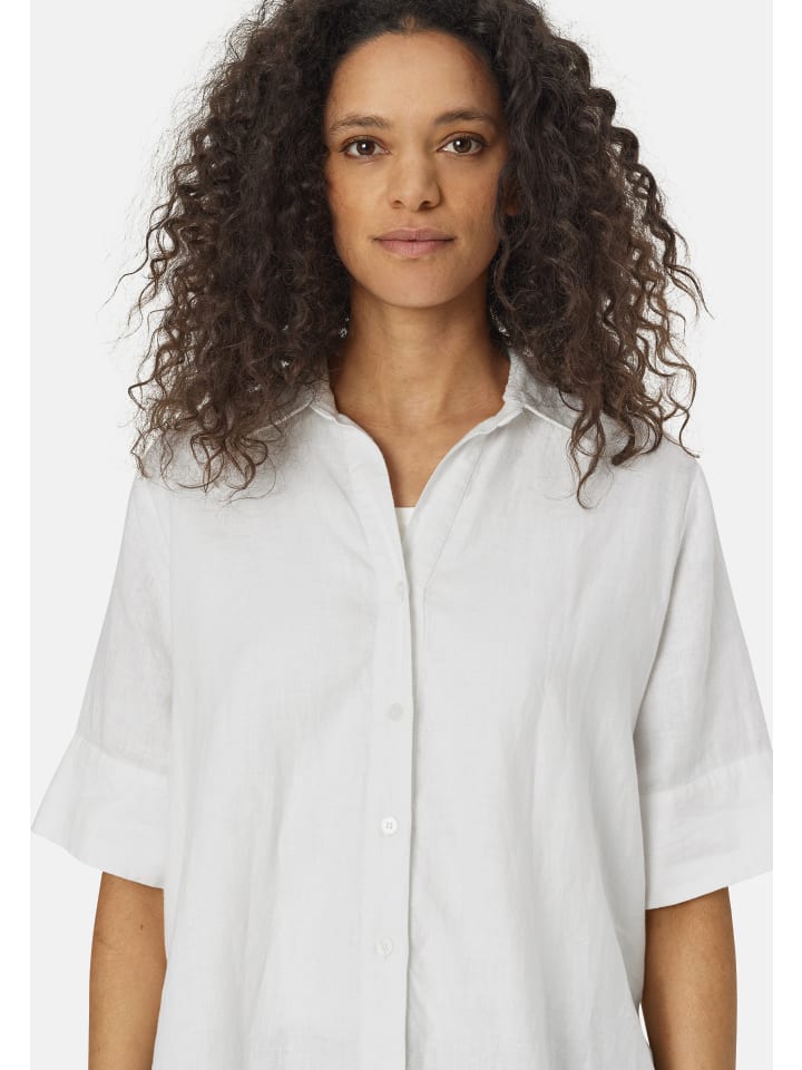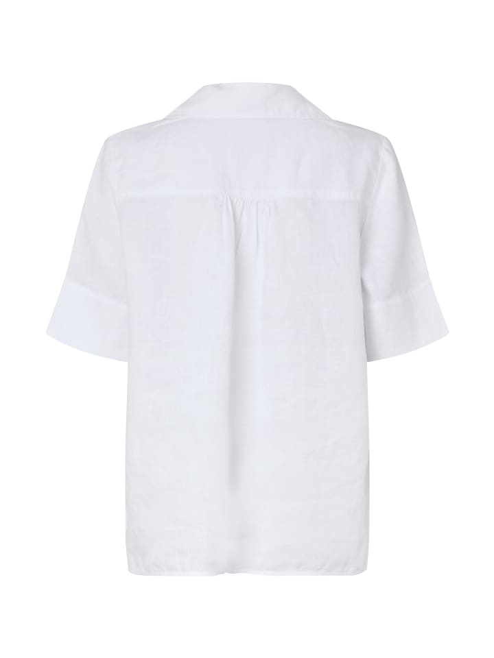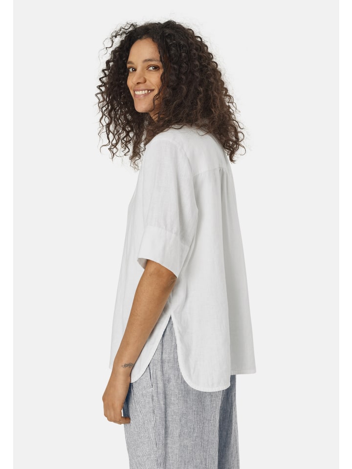 Простой женственный крой - первое, что бросается в глаза в этой красивой блузке-рубашке. Мягкий и слегка прозрачный лен делает блузку удобной и приятной в носке, а классический крой обеспечивает красивый прямой крой. Блузка имеет классический рубашечный воротник, рукава средней длины и аккуратно закругленный подол. Блузка-рубашка доступна в нескольких великолепных цветах, а ее простой дизайн делает ее универсальной и подходящей к любой одежде.