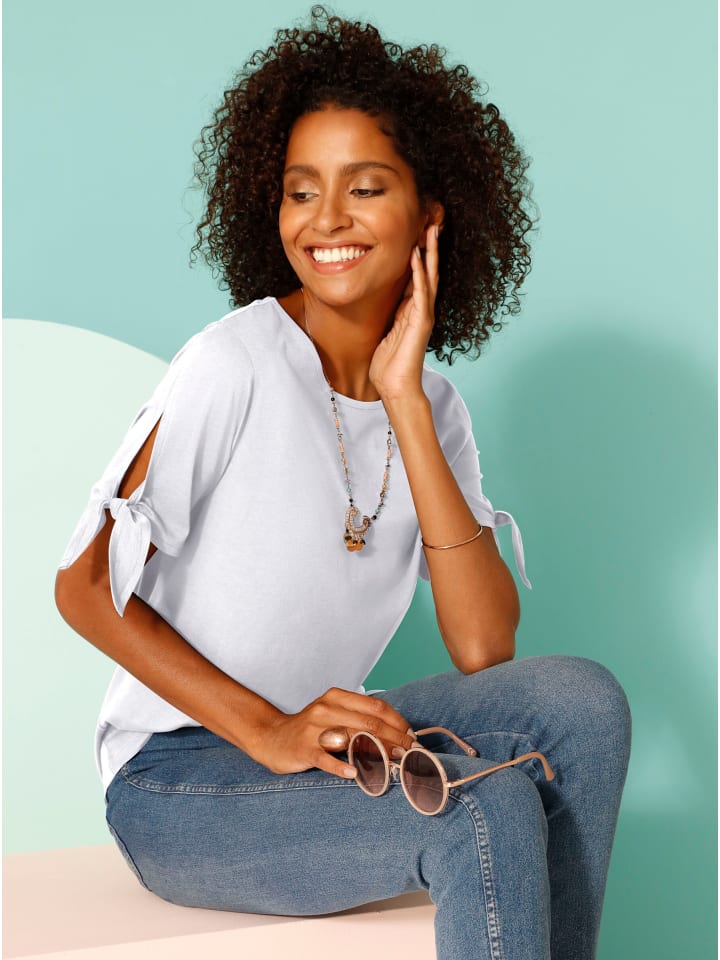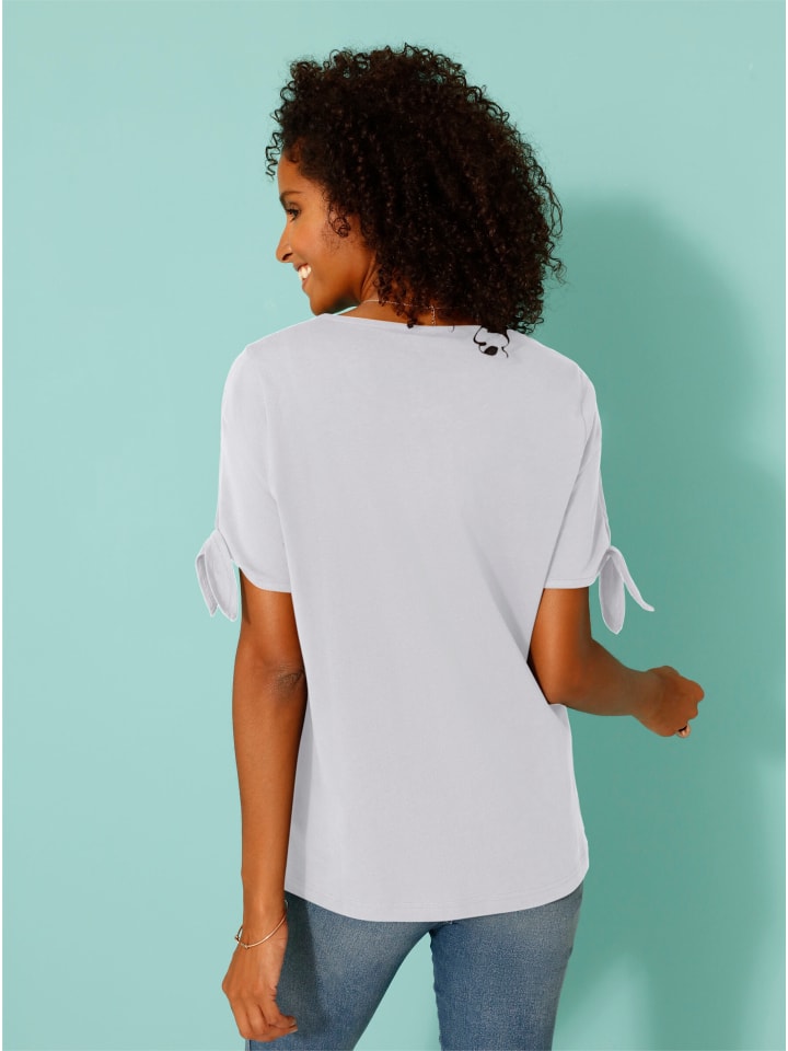 По отличной цене: рубашка великолепного дизайна с небольшим разрезом и завязкой на манжете рукава.