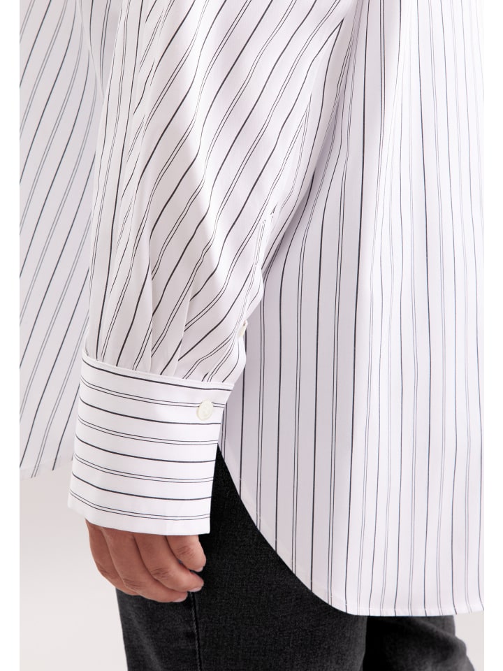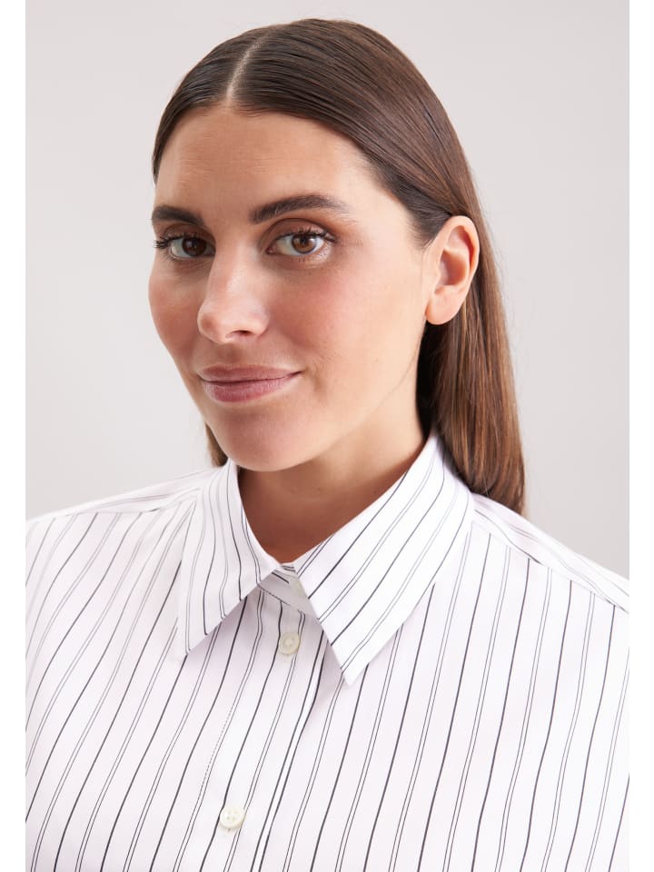 Женственная и элегантная: эта блузка-рубашка в пол из коллекции «Curvy» от Seidensticker стильно подчеркнет ваш силуэт. Изысканный полосатый узор добавит идеальный модный штрих. Эта модель, неподвластная времени, воплощает не только модный профессионализм, но и женскую уверенность в себе. Элегантные перламутровые пуговицы дополняют образ.