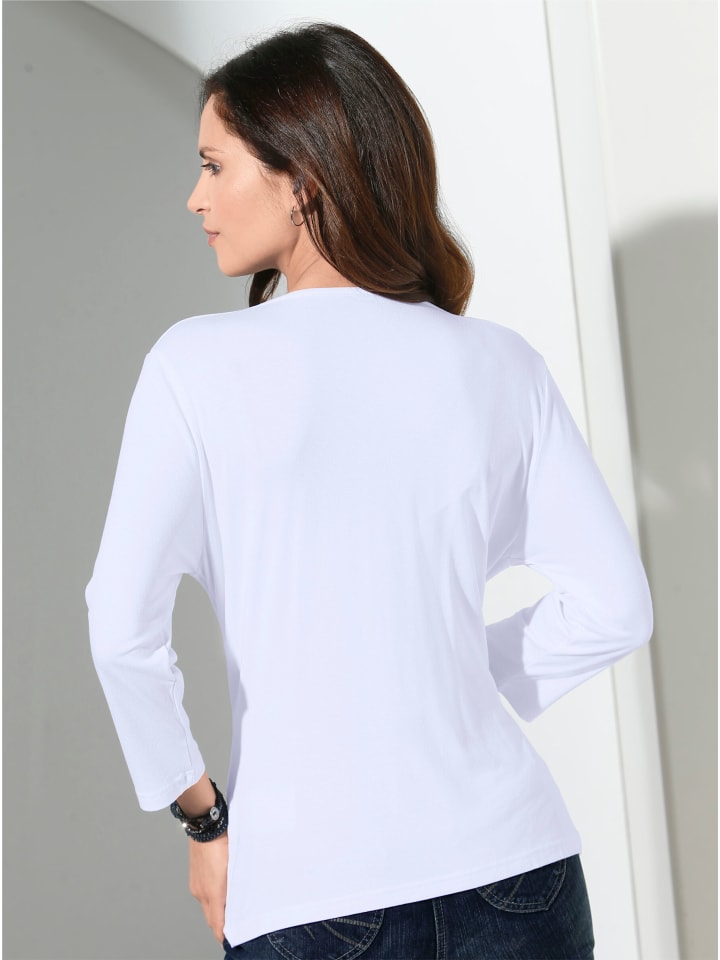 Потенциальный новый фаворит! Рубашка с мягким ниспадающим небольшим воротником-водопадом. Рукава 3/4.