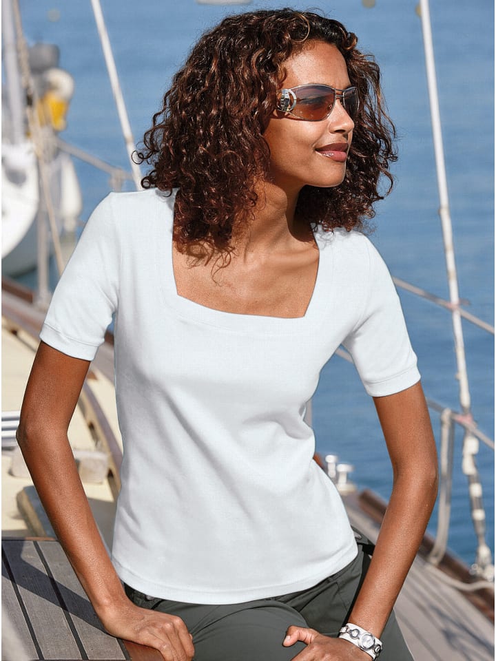 Рубашка со стильным квадратным вырезом в универсальной цветовой гамме.