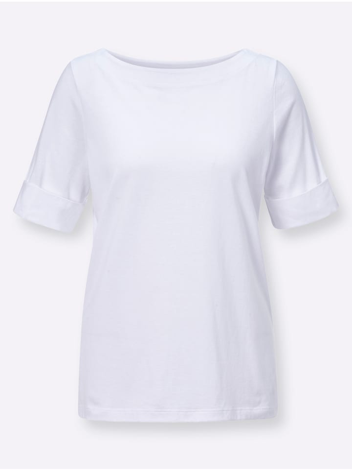 Ткань джерси невероятно мягкая на ощупь и проста в уходе! Эта рубашка с женственным вырезом «лодочка». Короткие рукава заканчиваются современной притачной манжетой. Боковые разрезы обеспечивают дополнительный комфорт.