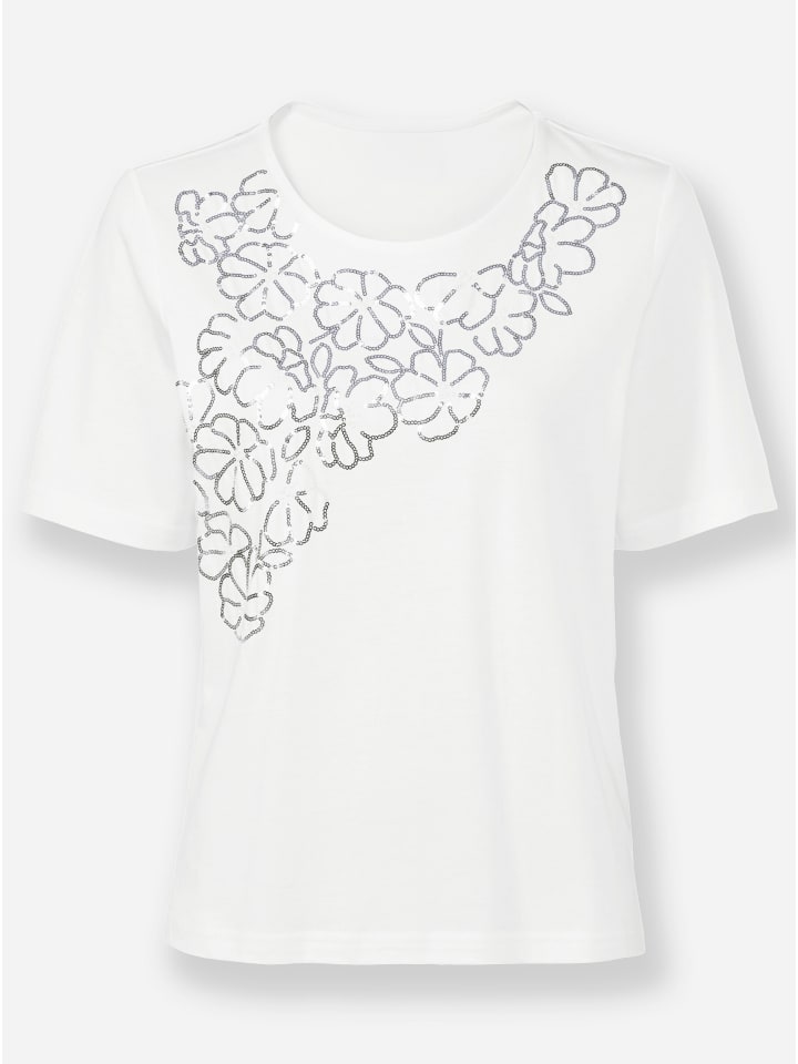 Потрясающий акцент для множества стильных образов: рубашка с короткими рукавами, стратегически расположенная, сверкающая отделка из пришитых пайеток и декоративных бусин спереди. Сертифицировано OCS.
