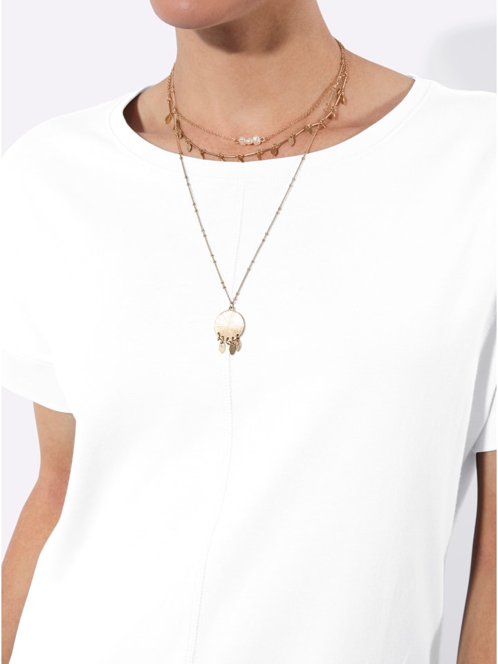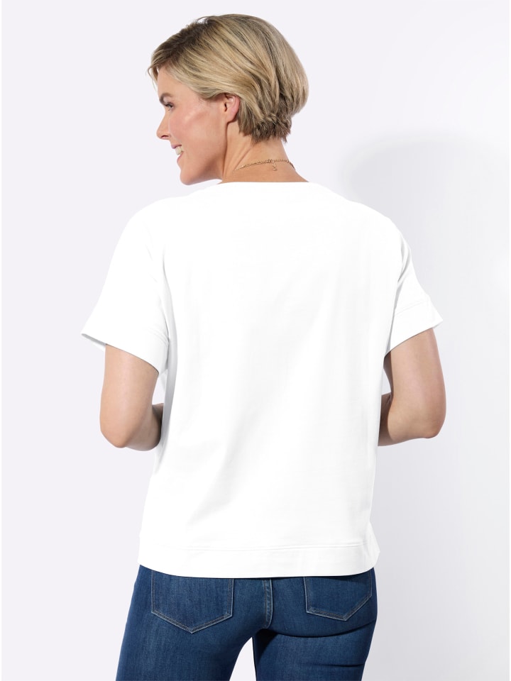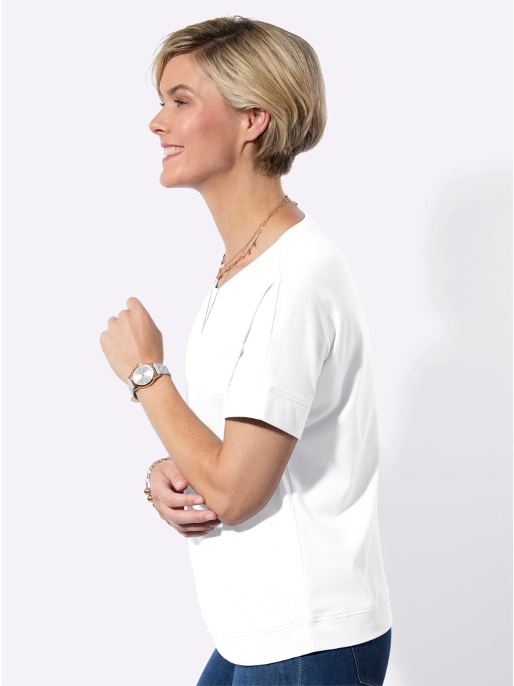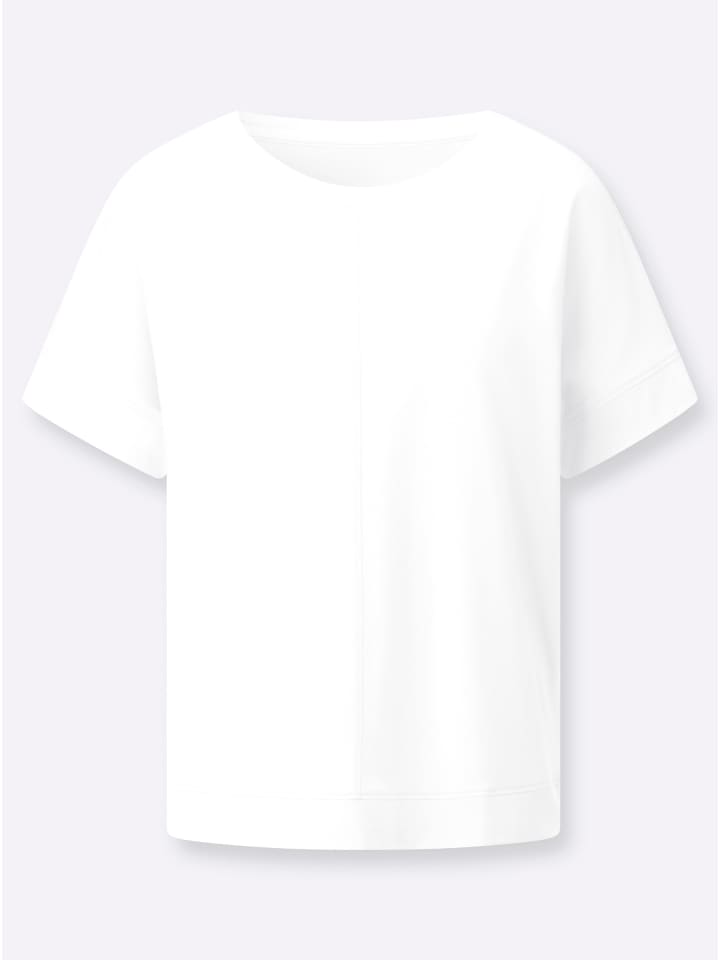 Очень простая в уходе и простая в уходе рубашка с короткими рукавами из трикотажного полотна. Круглый вырез, спущенная линия плеча и двухслойная отделка по подолу и рукавам. Сертифицировано GOTS.