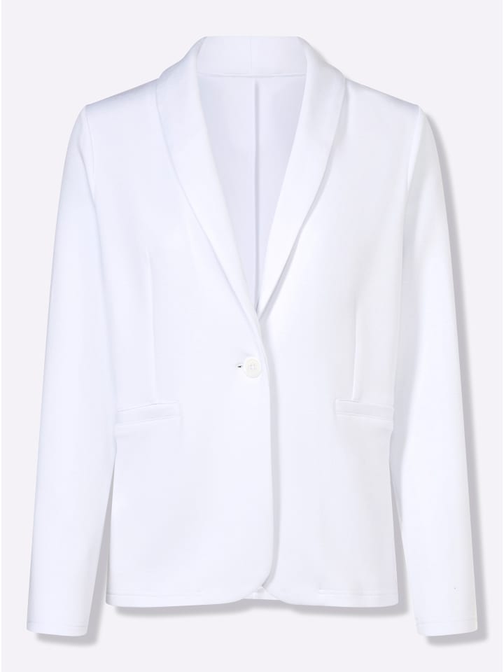 Идеальная альтернатива блейзеру: мягкий, эластичный пиджак из высококачественной ткани интерлок, сохраняющей форму. Имеет привлекательный шалевый воротник, застежку на одну пуговицу, имитацию прорезных карманов, формировочные вытачки спереди и рельефные швы сзади. Скругленный низ спереди.