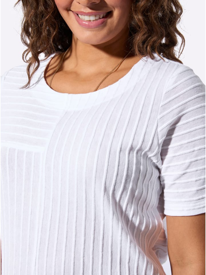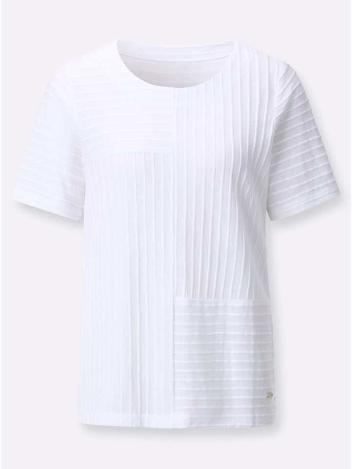Спортивный, простой в уходе и удобный в носке: рубашка с короткими рукавами и круглым вырезом. Текстурированные полосы по всему периметру создают уникальный образ. Лоскутный узор спереди добавляет стильный штрих. Поддерживает инициативу «Хлопок, сделанный в Африке».