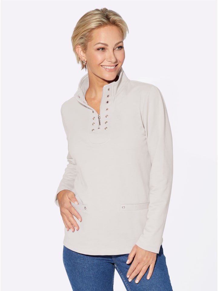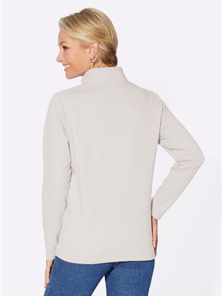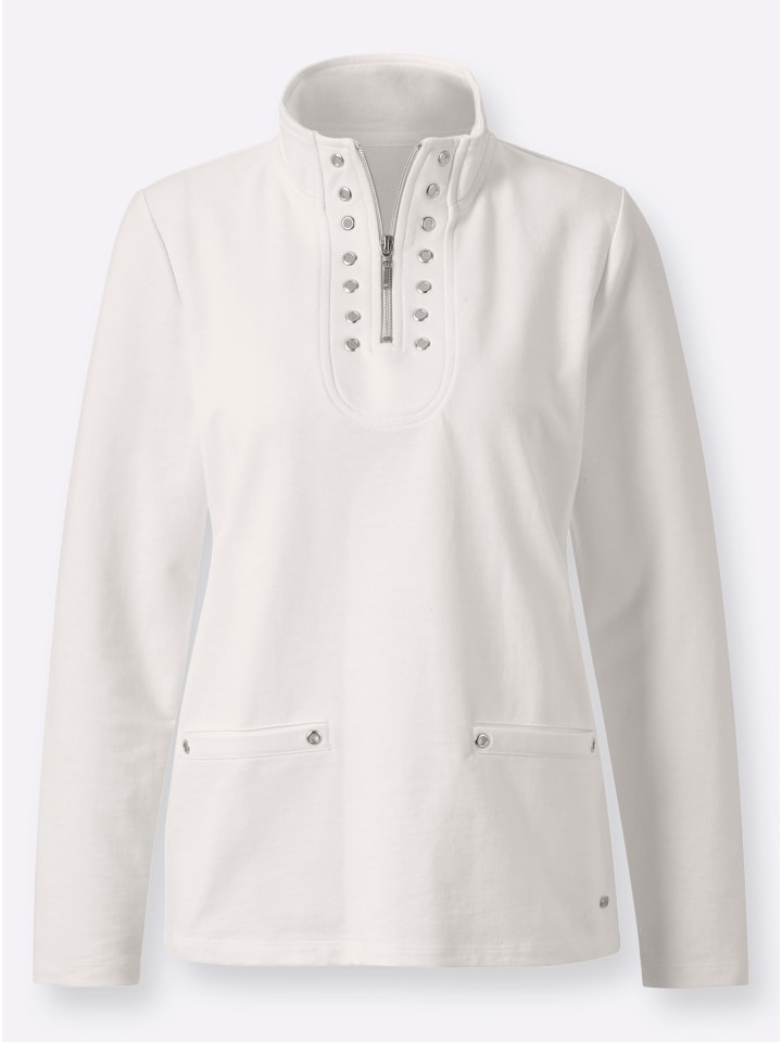 Удобная, эластичная и сохраняет форму: рубашка с воротником-стойкой и декоративной застежкой-молнией с люверсами. Спортивные детали: два декоративных кармана с люверсами. Длинные рукава.