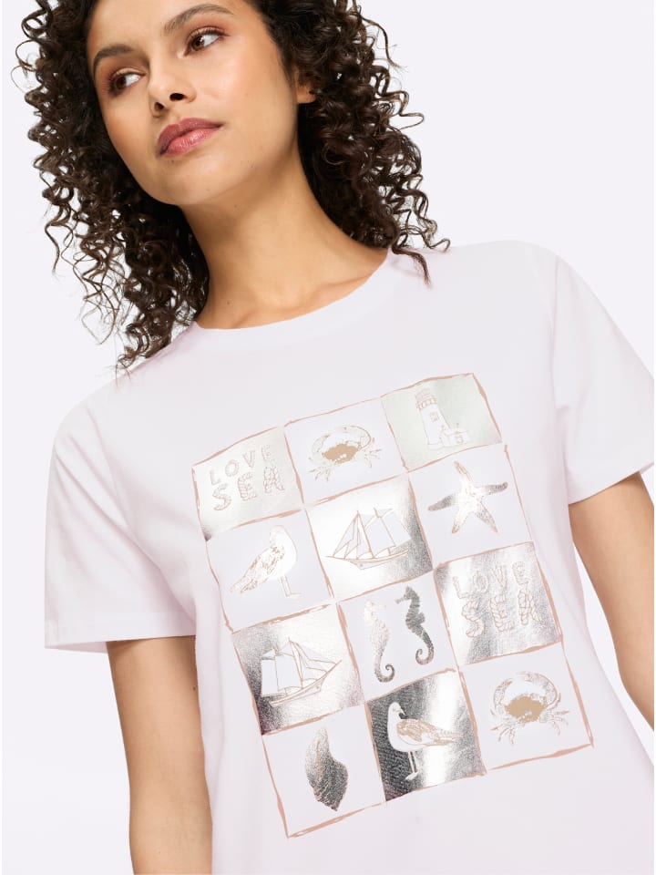 Модная футболка с принтом металлической фольги. Круглый вырез горловины и короткие рукава. Поддерживает инициативу «Хлопок, сделанный в Африке».
