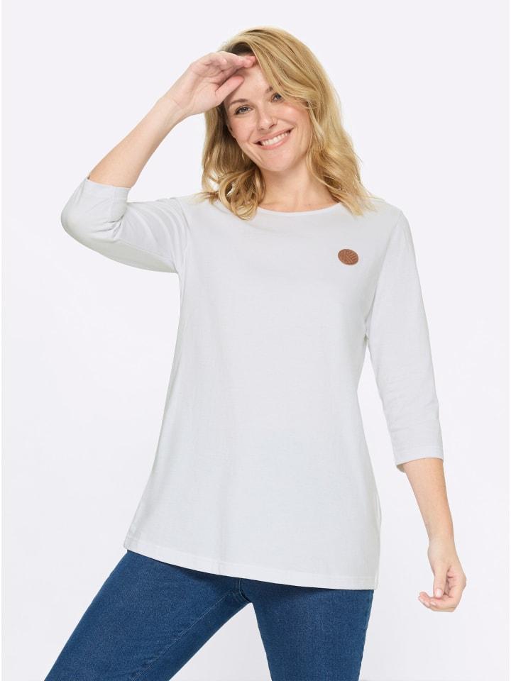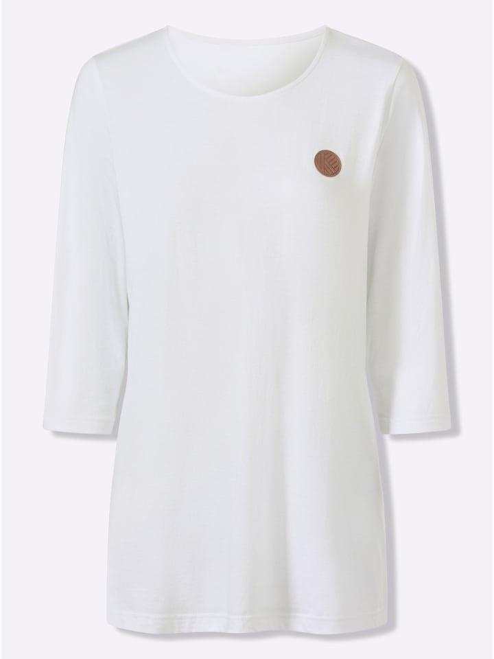 Просто незаменимая вещь! Эта универсальная рубашка с длинными рукавами украшена декоративной нашивкой под кожу. Круглый вырез и рукава три четверти.