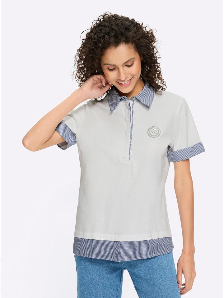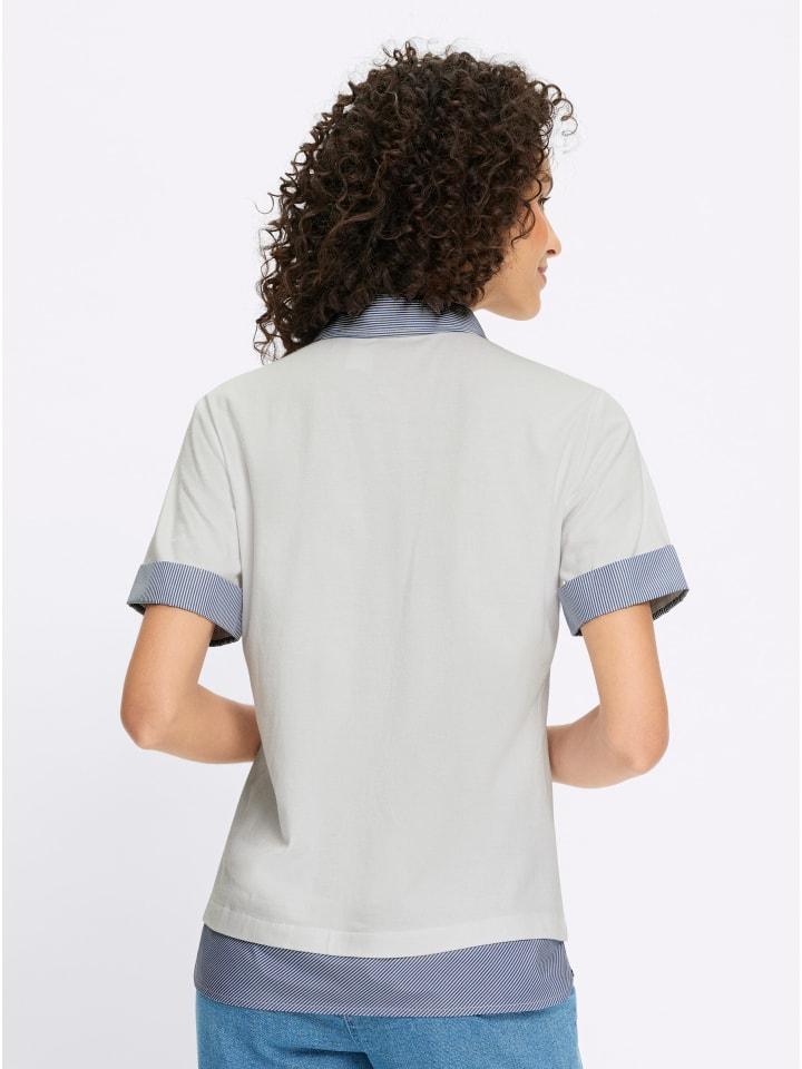 Рубашка поло. Приятная легкая ткань пике. Образ 2 в 1 с полосатой тканой отделкой. Воротник поло с короткой потайной планкой на пуговицах. Короткие рукава с фиксированными отворотами. Небольшой логотип BC на груди. Слегка закругленный подол. Поддерживает инициативу «Хлопок, сделанный в Африке».