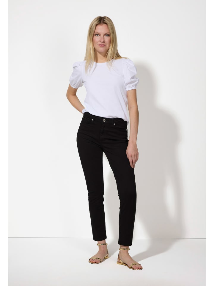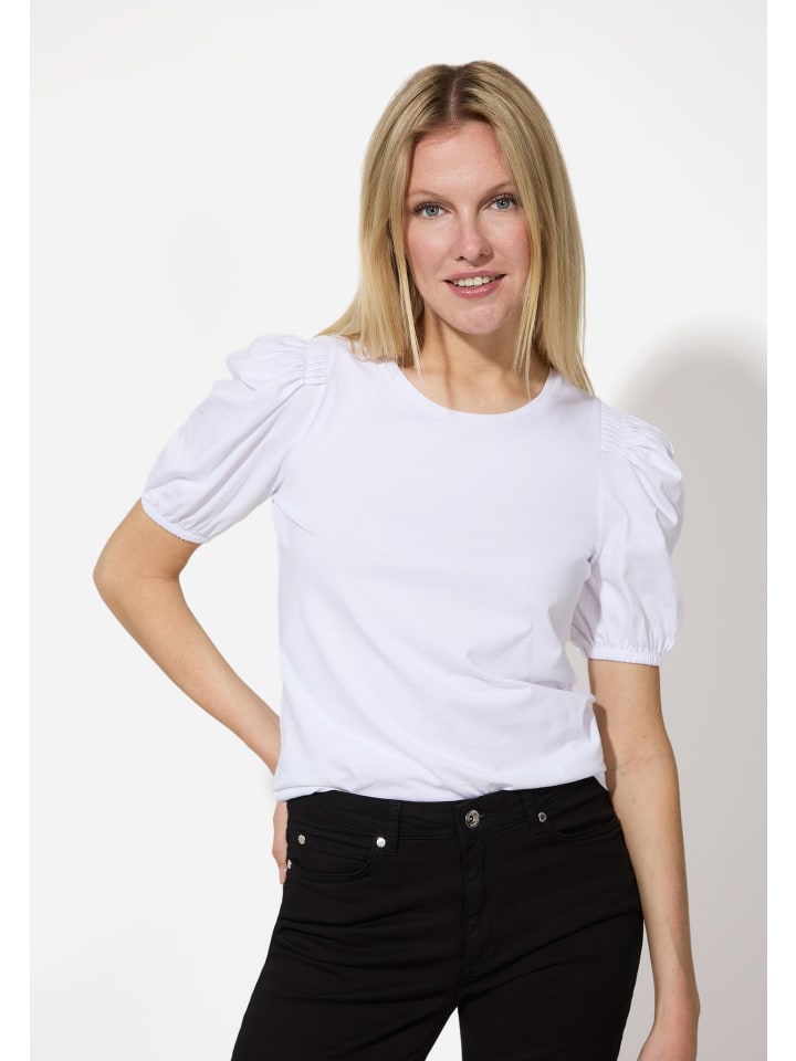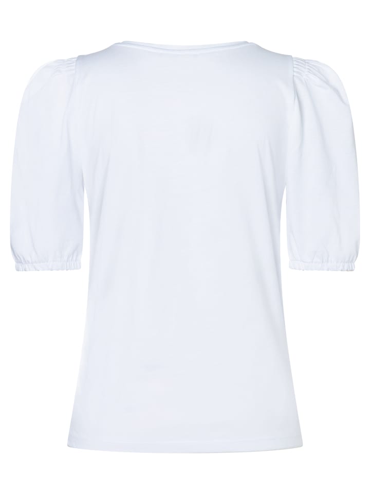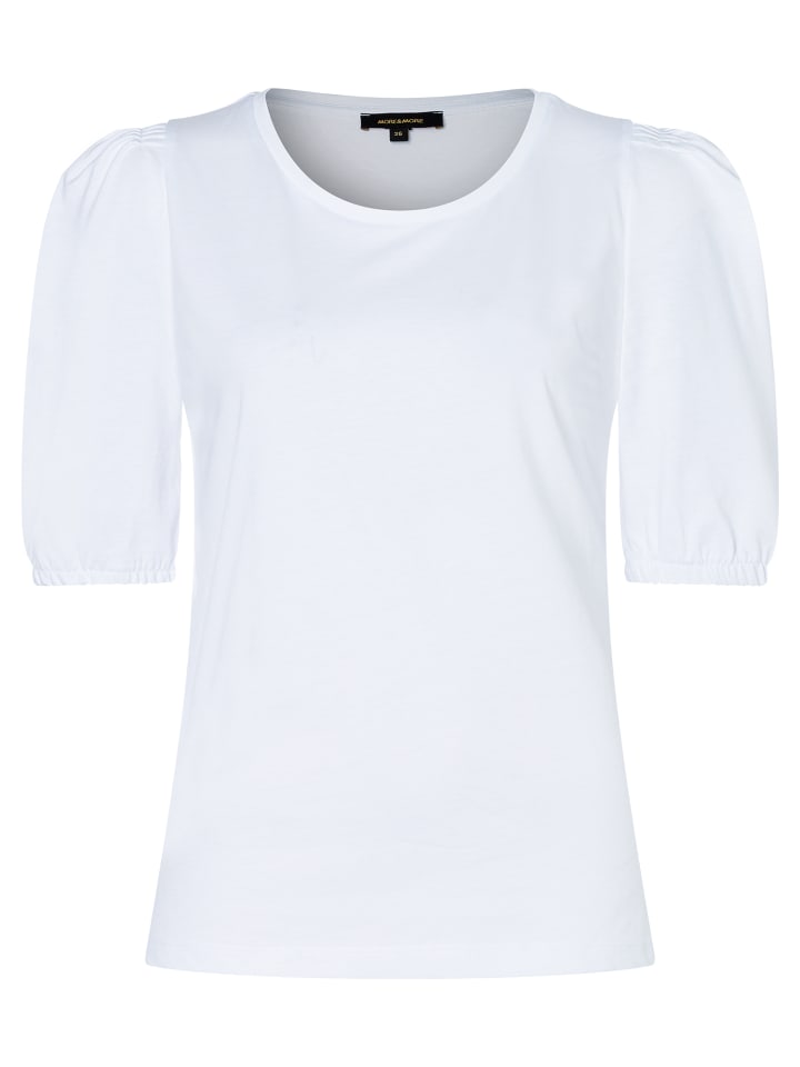 Эта современная футболка от MORE & MORE с модными рукавами-буфами невероятно универсальна. Носите ли вы ее с юбкой свободного кроя, спортивными шортами-бермудами или выцветшими джинсами, эта футболка - универсальная и неповторимая.