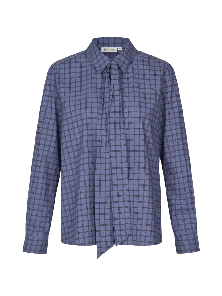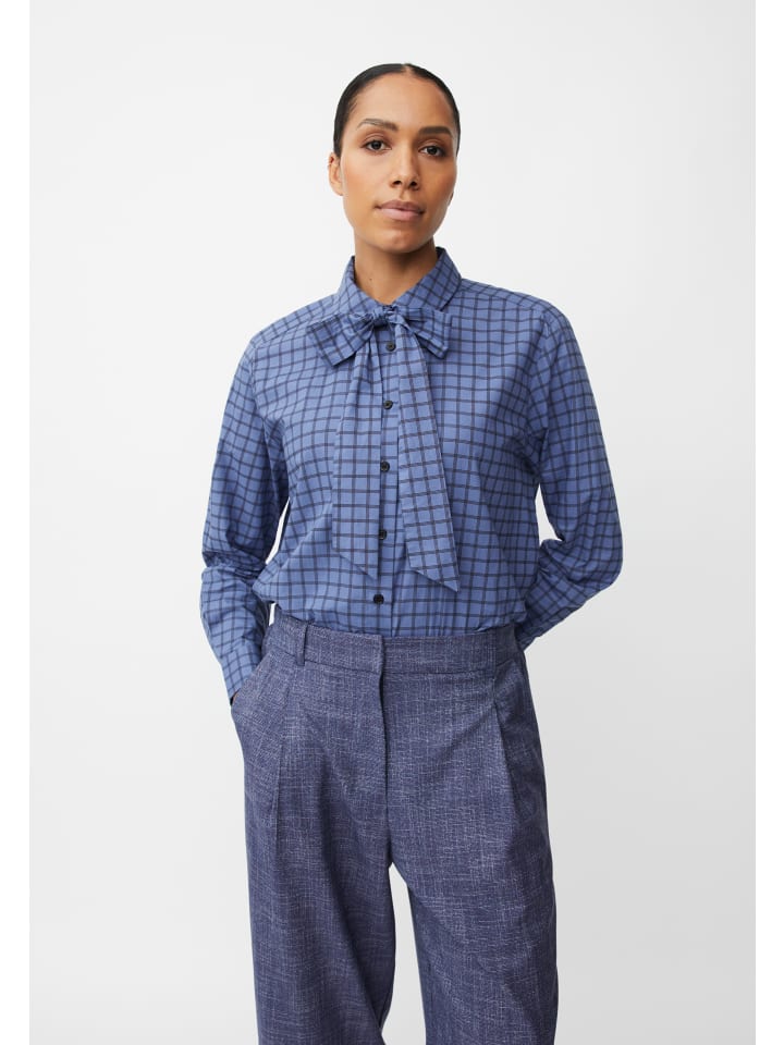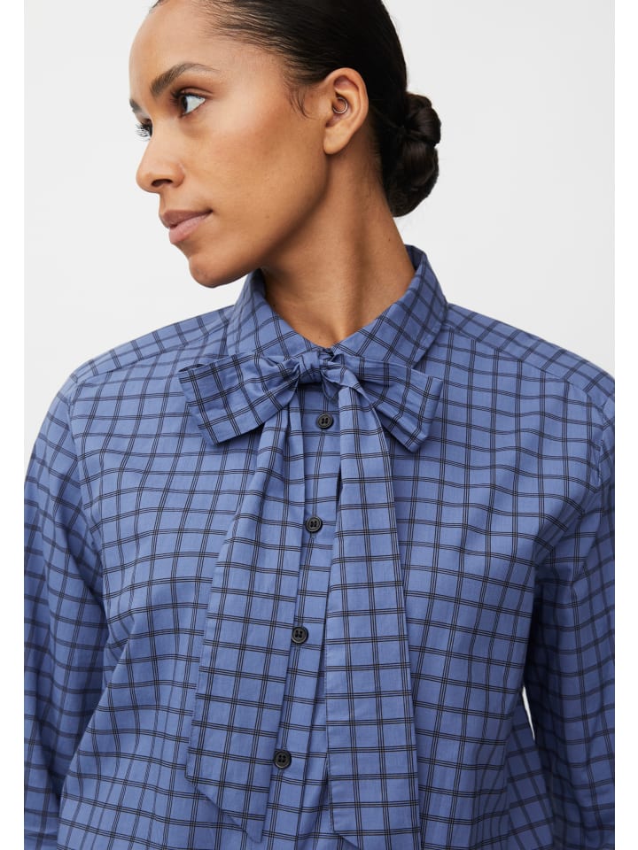 Эта женственная блузка-рубашка с красивым клетчатым узором - незаменимая вещь в вашем гардеробе. Элегантный завязочный элемент на шее добавляет женственности, которую подчеркивает А-образный крой. Блузка выполнена из мягкого хлопка, красивого и удобного в носке. Сочетайте ее с повседневными брюками или юбкой, а кардиган или жилет дополнят многослойный образ. Длина свободная, заказывайте на размер меньше.