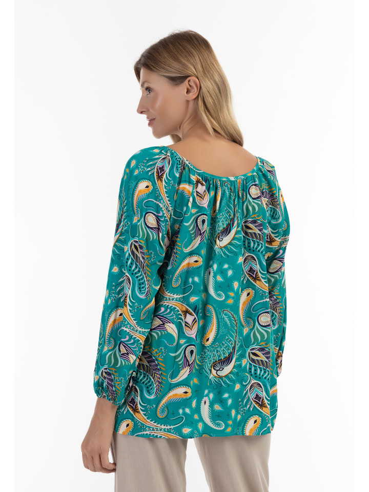 Эта блузка-рубашка от usha, произведенная в Италии, впечатляет своим женственным силуэтом, завязкой на шее с кисточками и эластичными манжетами. Элегантный принт с популярным узором пейсли, представленным usha в современной интерпретации. Эта стильная рубашка из мягкой вискозы будет очаровательно сопровождать вас и днем, и вечером.