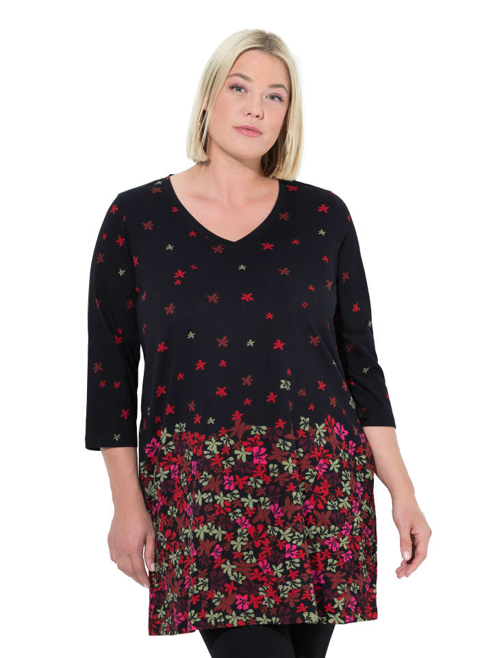 Рубашка с длинными рукавами, А-силуэта, с декоративным мотивом. V-образный вырез, рукава 3/4. Удобный широкий подол.