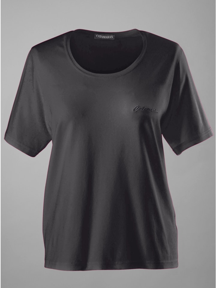 Комплект из двух вещей: спортивная рубашка со свободным круглым вырезом и короткими рукавами. Небольшая вышивка «Катамаран».