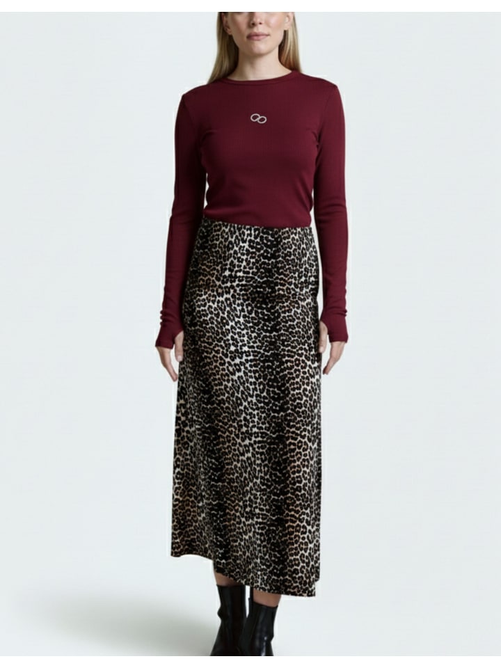 Эта рубашка с длинными рукавами в мелкую резинку сочетает в себе минималистичный дизайн и женственный крой. Приталенный крой подчеркивает фигуру, а классический круглый вырез горловины обеспечивает вневременную элегантность. Изящный акцент - вышитый логотип на груди, который придает этой базовой модели современный вид.