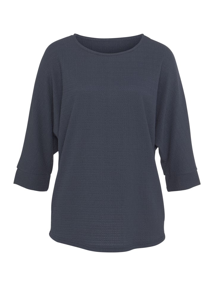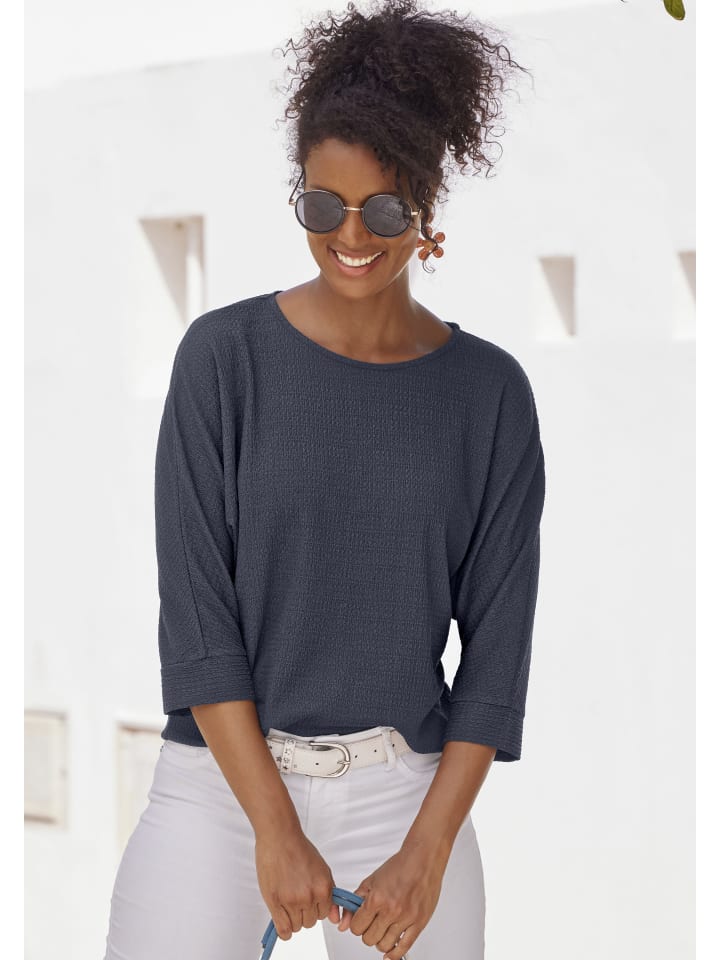 Женская рубашка с рукавами 3/4 от Vivance. С широкими рукавами «летучая мышь». Слегка закругленный подол. Текстурированная и удобная креповая ткань.