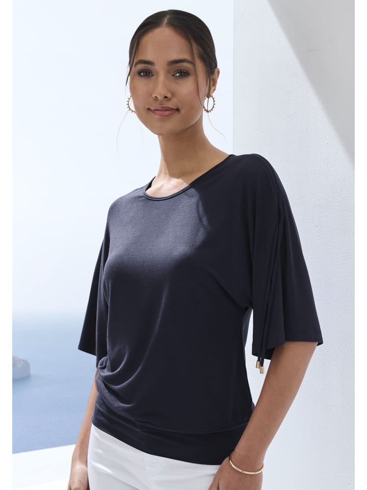 Рубашка от Lascana. Сборка на завязках на плечах позволяет регулировать длину рукава - короткий или три четверти. Широкий подол позволяет носить изделие в двух вариантах: длинным или коротким с присборкой. Свободный крой. Круглый вырез. Высококачественная вискоза.