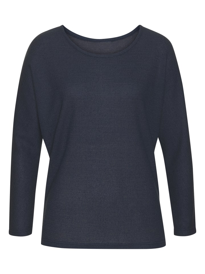 Однотонная рубашка с длинными рукавами от Vivance и круглым вырезом. Свободный крой, спущенная линия плеча и слегка расклешенные рукава «летучая мышь». Изготовлена из исключительно мягкого трикотажного полотна с гладкой изнанкой.