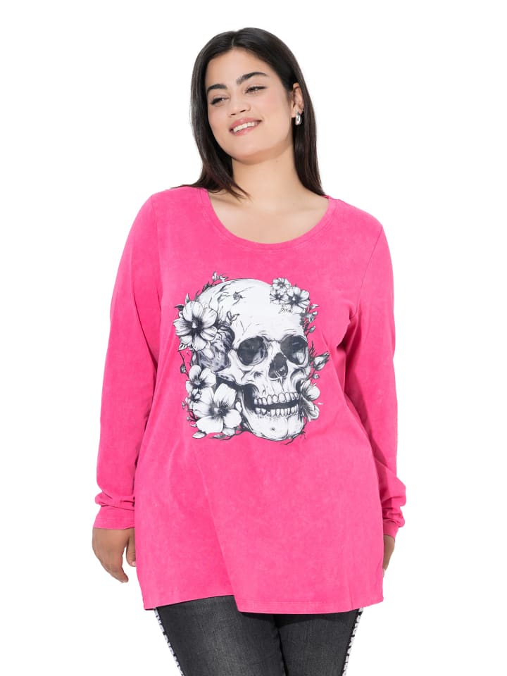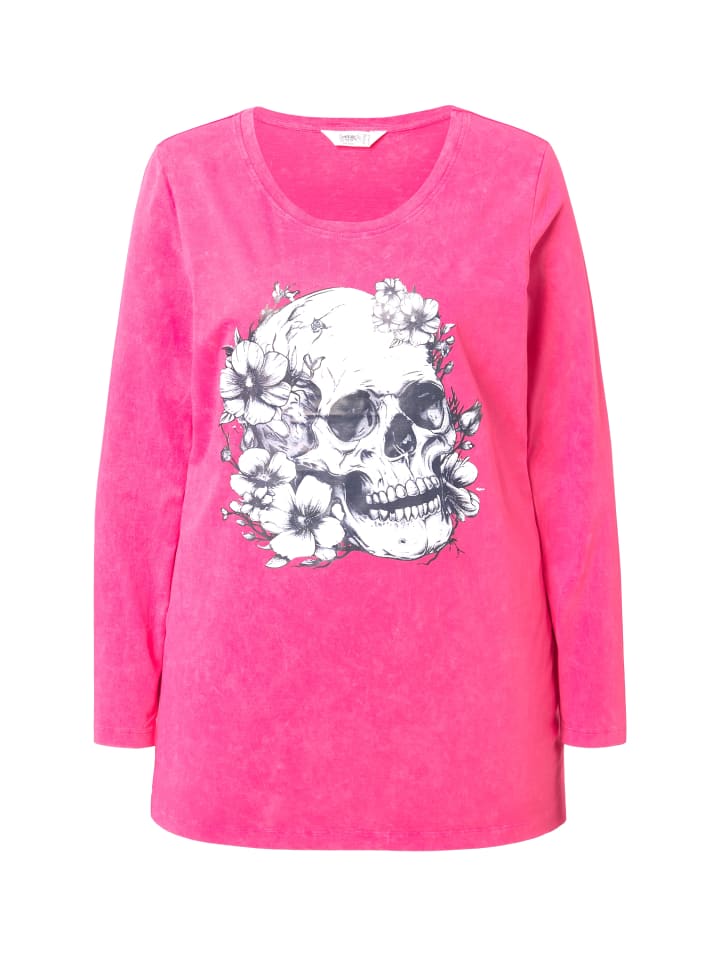 Футболка удобного кроя из предварительно выстиранного трикотажа с рисунком черепа. Круглый вырез горловины, длинные рукава.