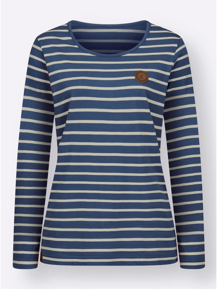 Спортивная и невероятно мягкая! Двухцветная рубашка в полоску из высококачественной пряжи, окрашенной в пряжу. Круглый вырез горловины с окантовкой. Нашивка из искусственной кожи на левой груди и правом подоле. Длинные рукава. В поддержку инициативы «Хлопок, сделанный в Африке».
