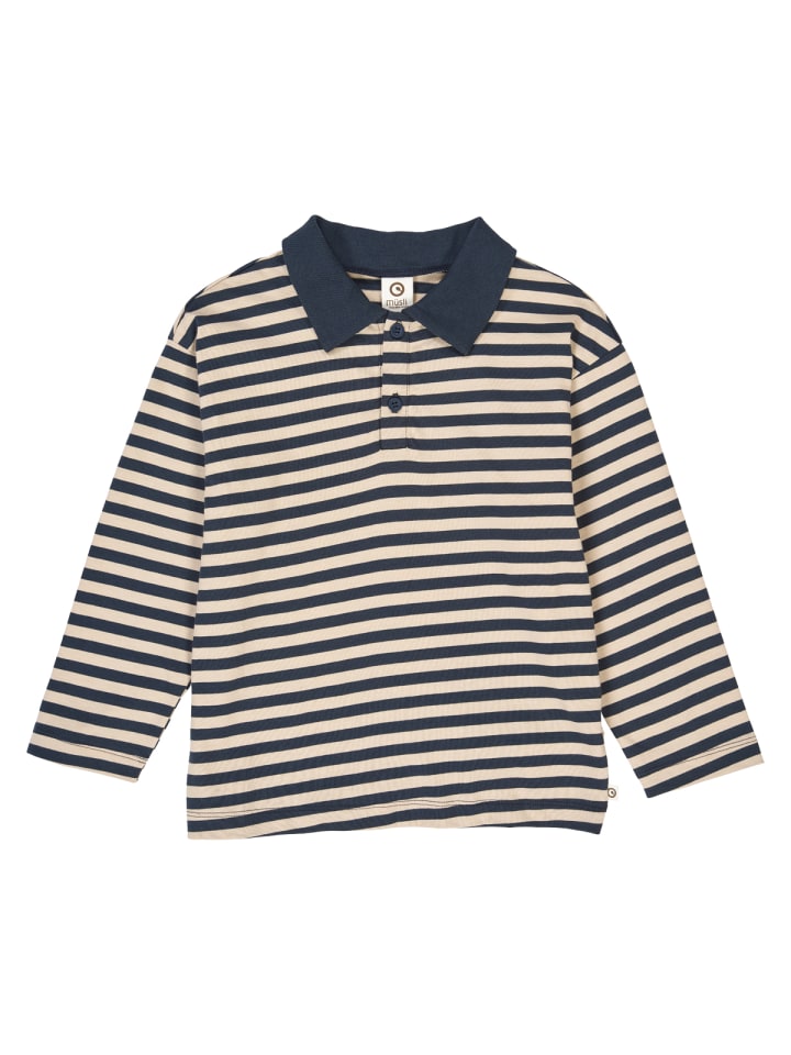 Эта рубашка с длинными рукавами и классическим воротником-поло - настоящая приманка для глаз! Стильный полосатый принт темно-синего и кремового цветов легко комбинируется и должен стать основой любого гардероба. Изготовленная из мягкого и эластичного 100% хлопкового одинарного джерси, наша рубашка с длинными рукавами обеспечивает не только удобную посадку, но и полную свободу движений для вашего ребенка. Классический воротник-поло делает ее по-настоящему универсальной вещью для гардероба. Она идеально подходит для уютных дней дома или для маленьких приключений на свежем воздухе. Стандарт GOTS. Сертифицировано Ecocert Greenlife Lic. № 151714. Этот продукт сертифицирован GOTS Organic. В настоящее время это самый высокий стандарт для одежды. Все производственные процессы, такие как окрашивание, ткачество и шитье, осуществляются в соответствии со строжайшими правилами с учетом охраны окружающей среды. Условия труда также строго контролируются на каждом этапе производства. 100% хлопок