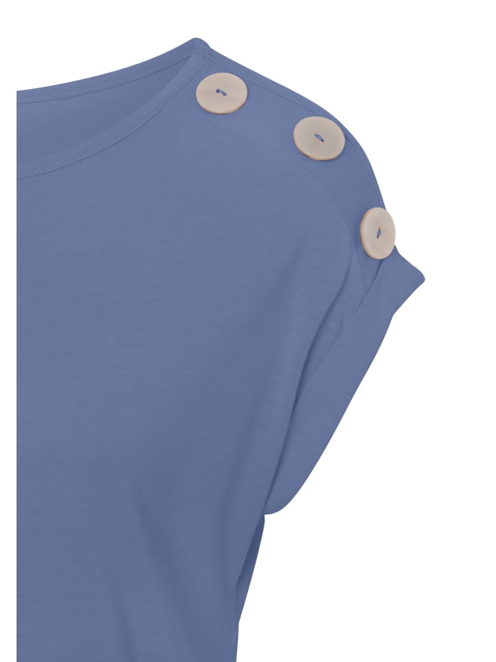 Рубашка из буйволиной шерсти с элегантными перламутровыми декоративными пуговицами вдоль левого плечевого шва. Круглый вырез горловины и короткие бесшовные рукава-подвороты. Прямой подол. Слегка приталенный крой. Мягкий вискозный трикотаж.