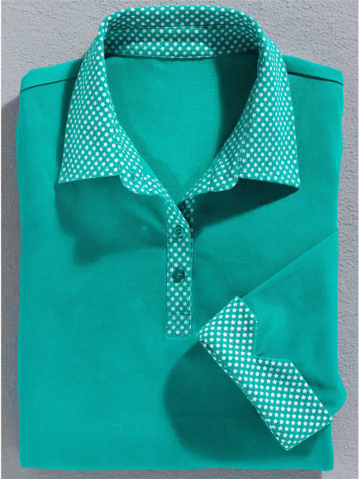 Чистый хлопок по привлекательной цене! Эта рубашка-поло украшена модным принтом звезд на воротнике, планкой с пуговицами и манжетами рукавов ¾.