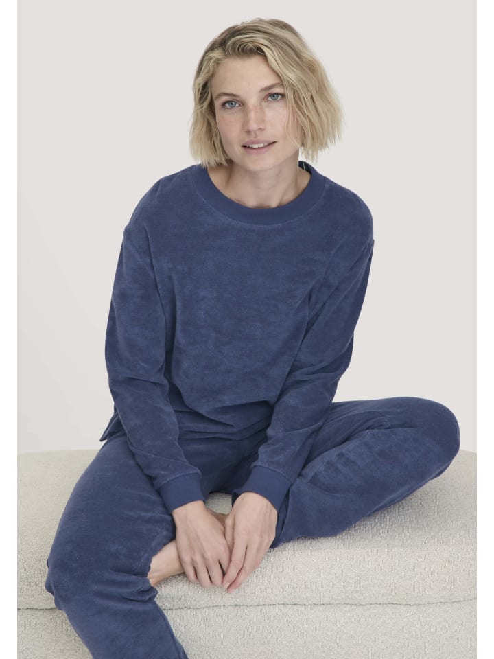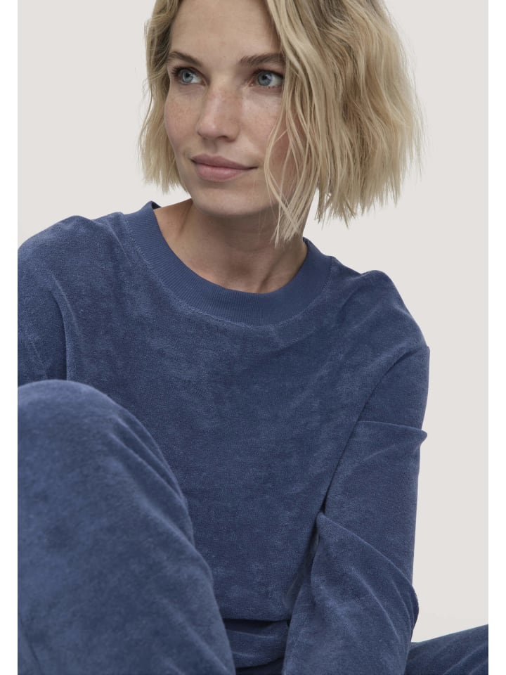 Настоящее блаженство. Свободная рубашка для дома из ворса - мягкая на ощупь и непринужденная на вид. Махровая ткань из чистого органического хлопка мягко впитывает влагу и сохраняет приятное тепло, обеспечивая приятные ощущения для кожи и чистую совесть.