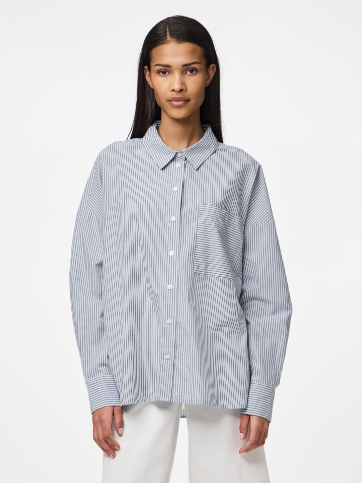 Полосатая рубашка из кашемира синего цвета Pieces 7 279₽