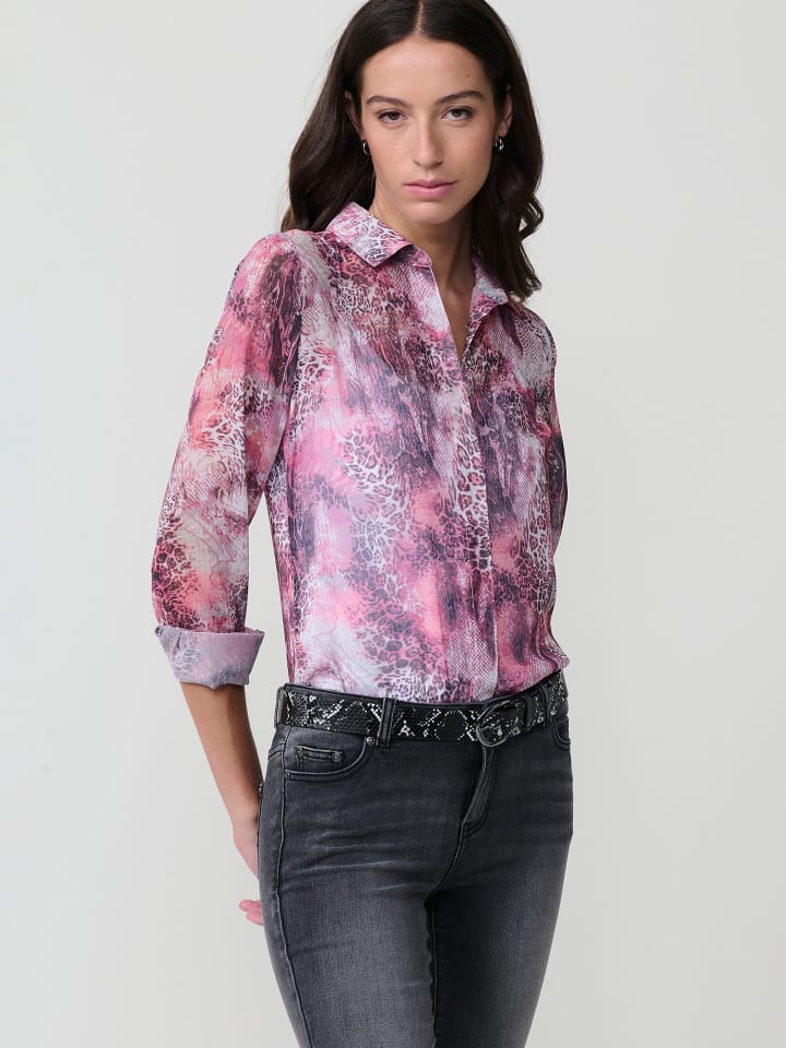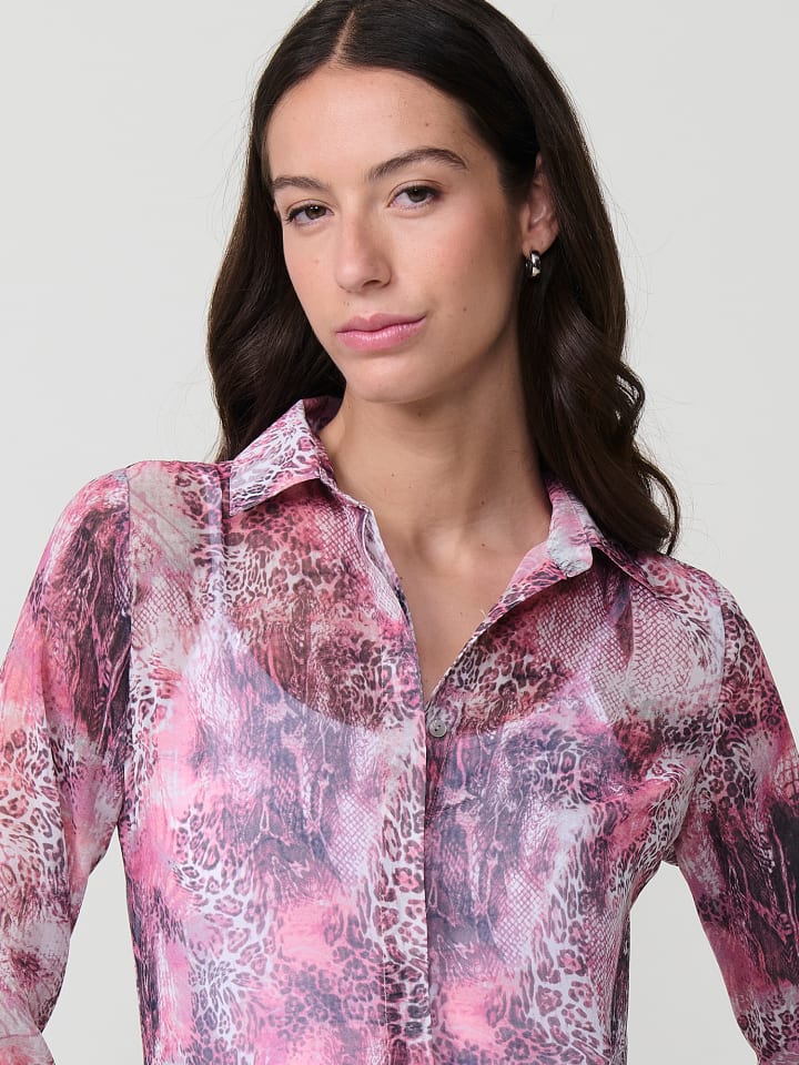 - Прозрачная шифоновая блузка с анималистичным принтом