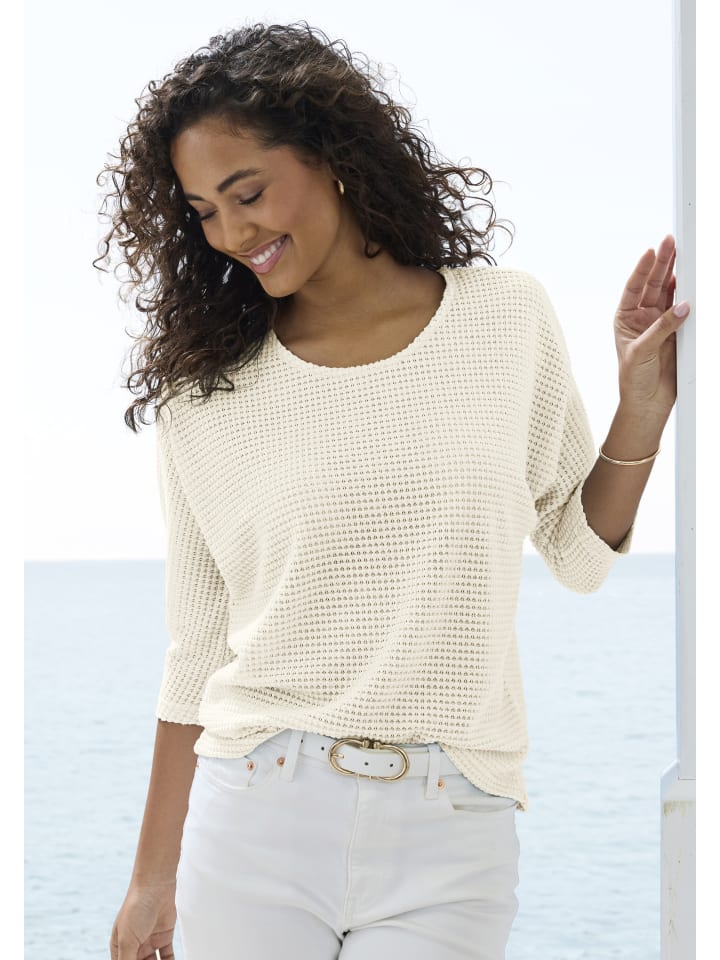 Рубашка с длинными рукавами от Vivance с слегка прозрачной вафельной текстурой. Круглый вырез горловины. Свободный крой. Ткань, не требующая особого ухода, изготовлена из переработанного полиэстера.