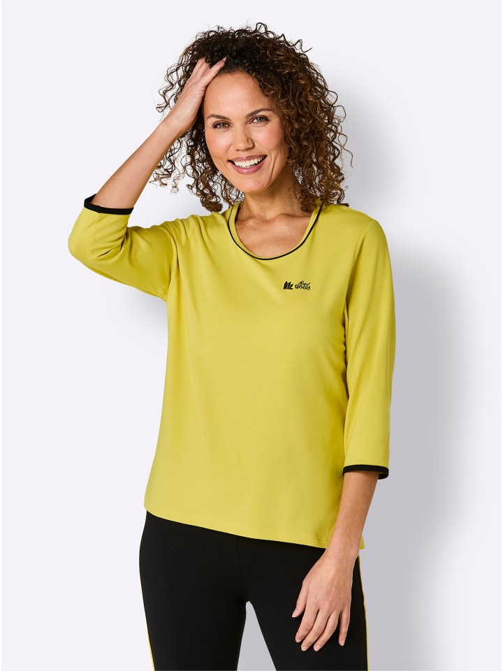 Спортивная рубашка от Feel Good с контрастной окантовкой на круглом вырезе, рукавами 3/4 и боковыми разрезами. Вышивка Feel Good на уровне груди. Одинарный трикотаж. Поддерживает инициативу «Хлопок, сделанный в Африке».
