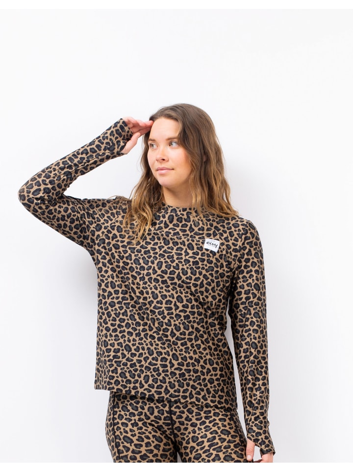 Свободный базовый слой с плоскими швами для комфорта, петлями для больших пальцев и удлиненным сзади подолом для дополнительного тепла. Эффектный леопардовый принт делает этот функциональный топ не только практичным, но и стильным аксессуаром - дерзким, уверенным в себе и совсем не скучным. Изготовлен из эластичной, быстросохнущей и влагоотводящей сертифицированной переработанной ткани с защитой от солнца UPF 50+ и мягкой, уютной подкладкой. Носите его в горах и за их пределами, на апре-ски, в спортзале и на любых других занятиях. Сочетайте его с одними из наших базовых брюк, чтобы создать свой уникальный образ. Разработано в Оре, Швеция, сноубордистами, лыжниками и путешественниками.