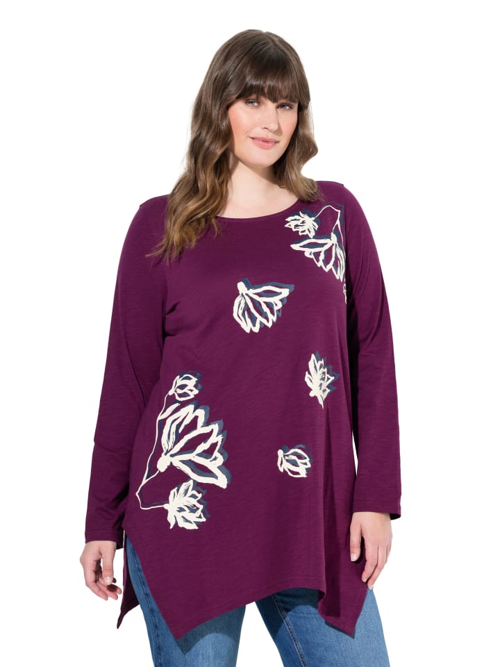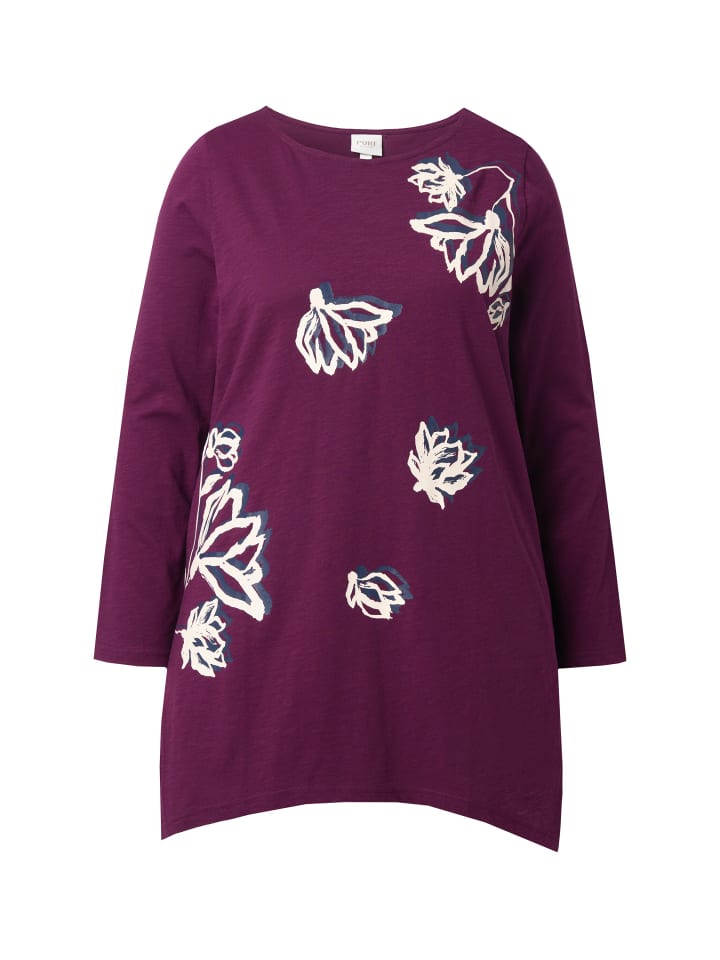 Рубашка с длинными рукавами из органического хлопка. Высококачественный трикотаж, А-силуэт, цветочные мотивы, острый край. Вырез горловины «лодочка». Органический; сертифицирован ECOCERT Greenlife, лицензия № 152026.