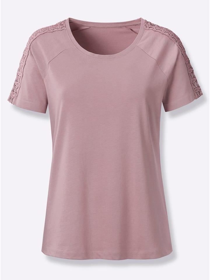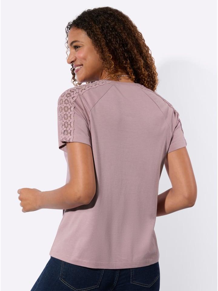 Универсальная базовая модель с привлекательными деталями: рубашка с круглым вырезом, отделкой кружевом на плечах и короткими рукавами реглан. Сертифицировано OCS.