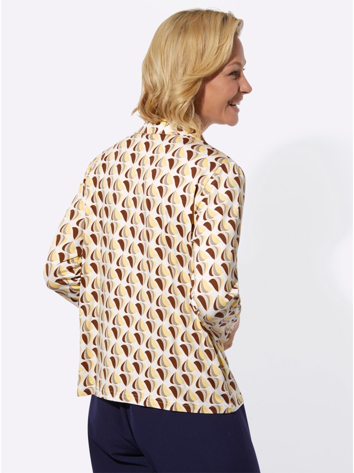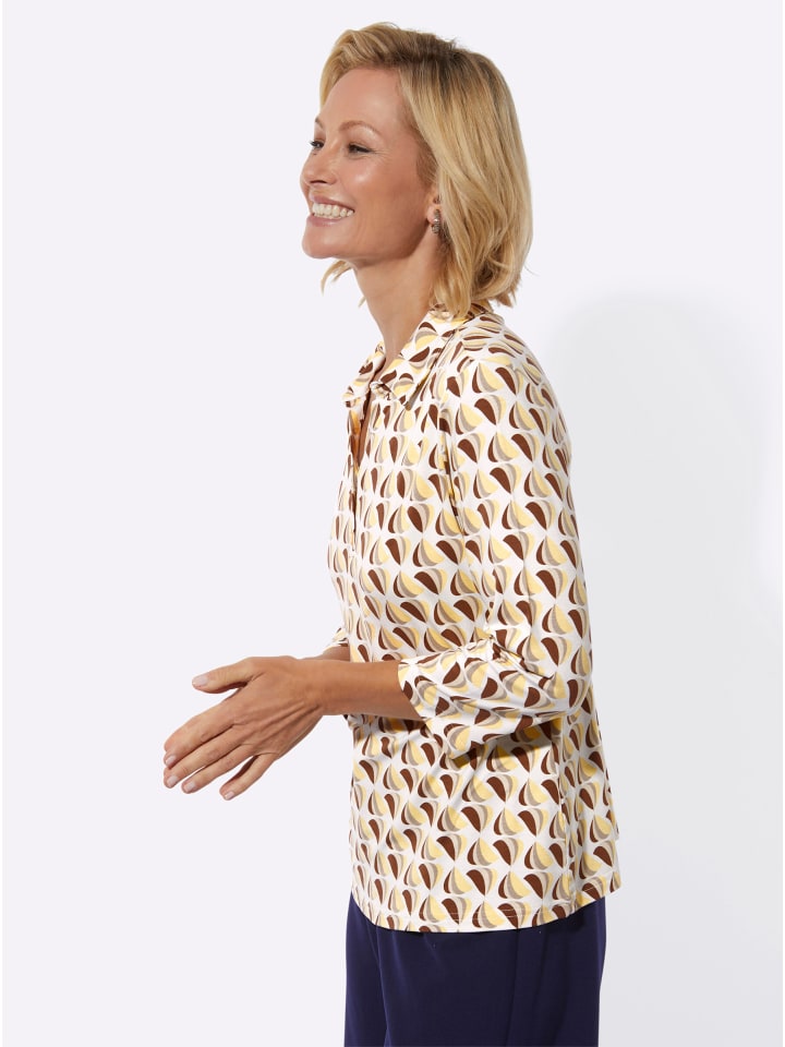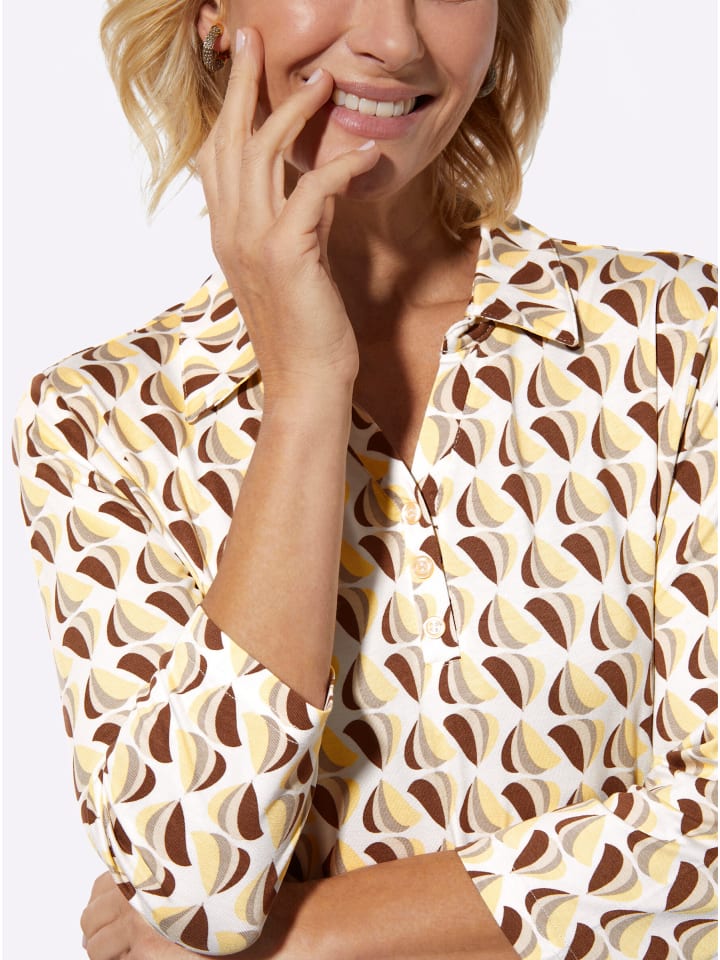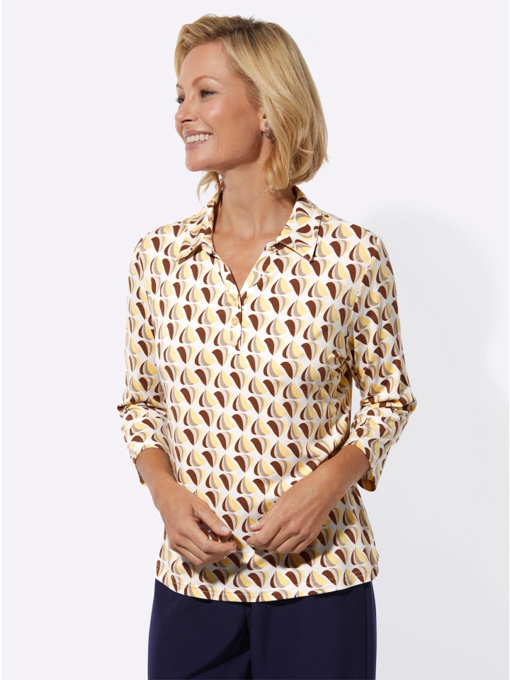 Рубашка-поло с узором, рукава 3/4. Воротник-поло с открытым V-образным вырезом и декоративной планкой с пуговицами. Изготовлена из вискозы Lenzing ECOVERO.