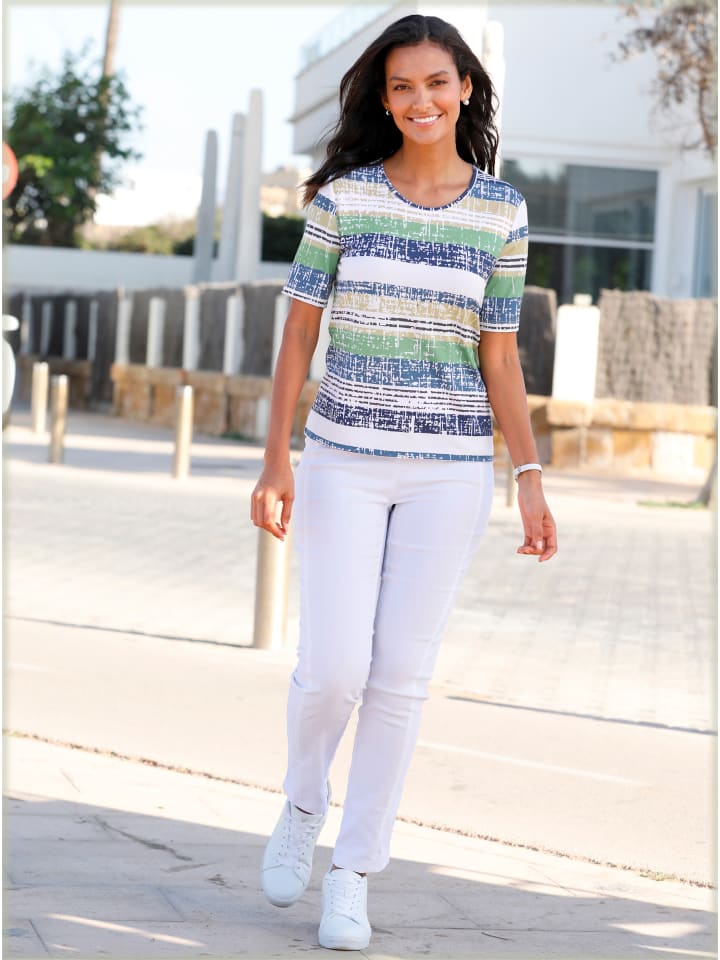 Благодаря принту эта рубашка с круглым вырезом станет универсальной вещью. Короткие рукава. Мягкая вискозная ткань исключительно комфортна в носке.