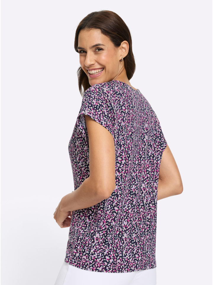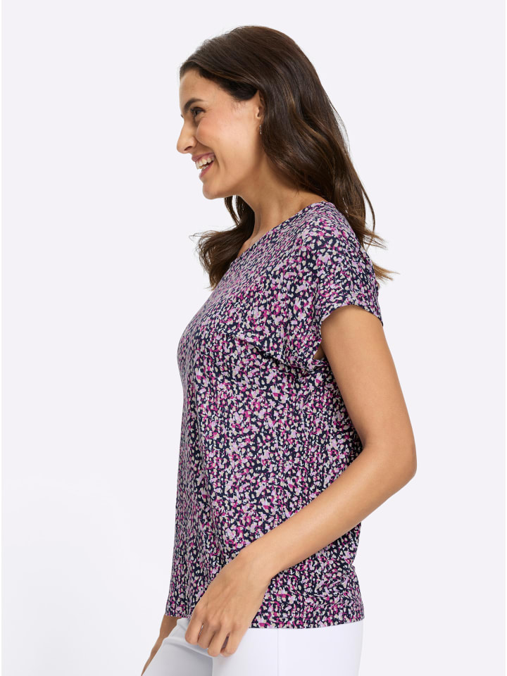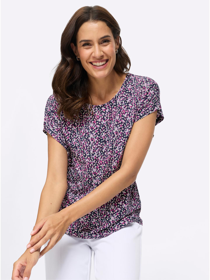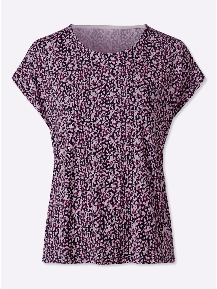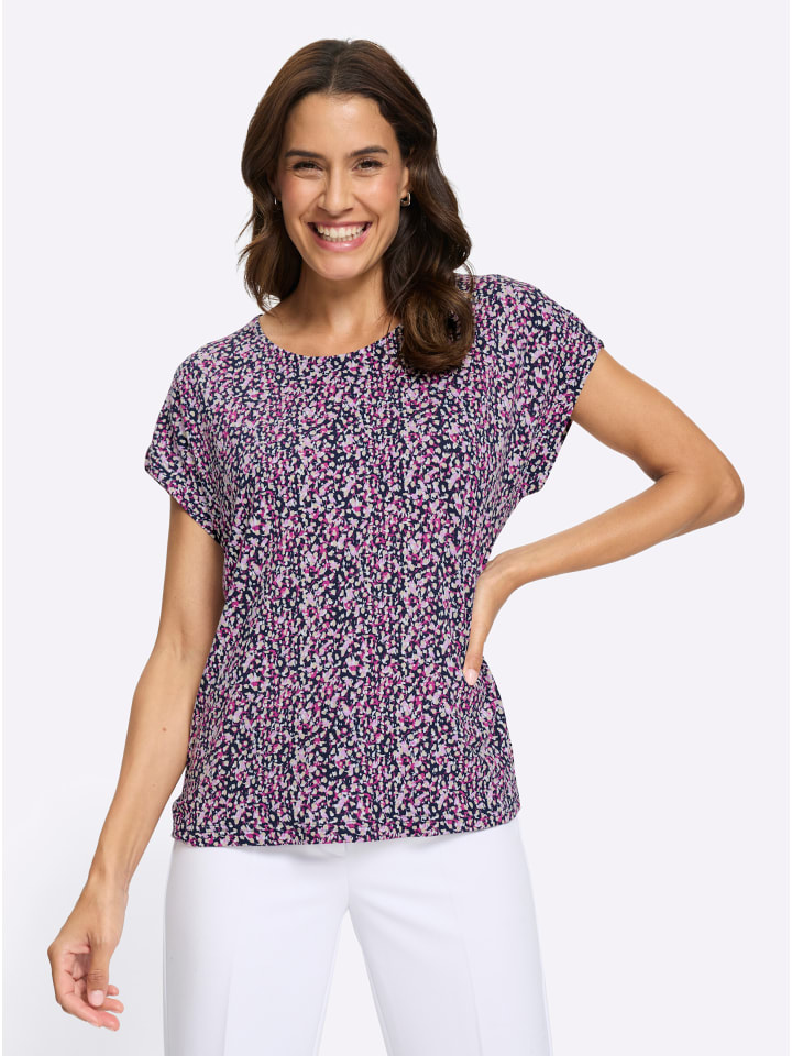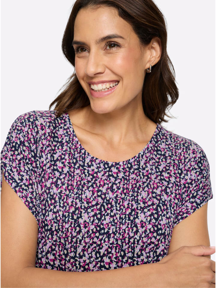 Эта жизнерадостная рубашка с ярким принтом впечатляет гладкой вискозной эластичной тканью, круглым вырезом и непринужденно спущенными плечами. Вискоза качества ECOVERO от Lenzing.