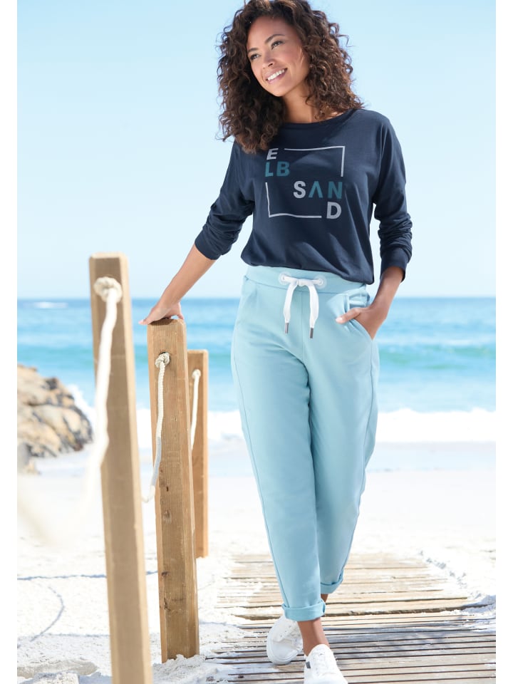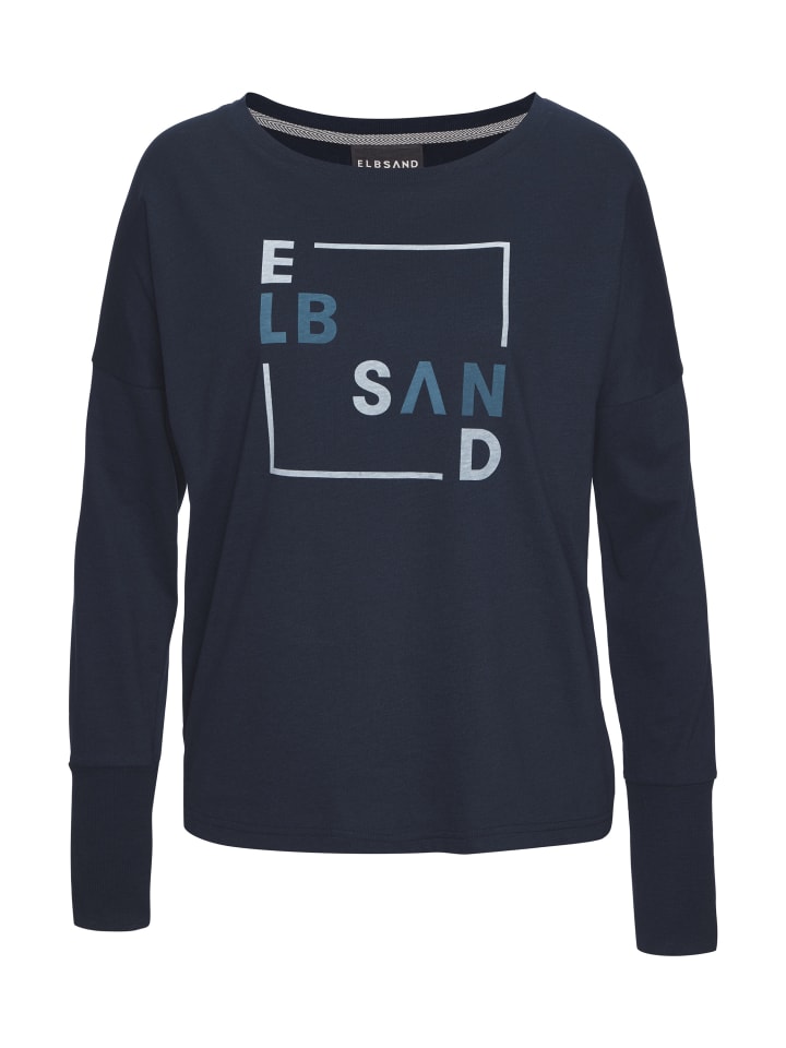 Повседневная рубашка с длинными рукавами от Elbsand. Отличительная черта: широкий круглый вырез горловины. Спущенная линия плеч и большой логотип спереди и маленький сзади на горловине. Свободный свободный крой, идеально подходит для повседневных образов. Мягкий трикотаж с добавлением хлопка.
