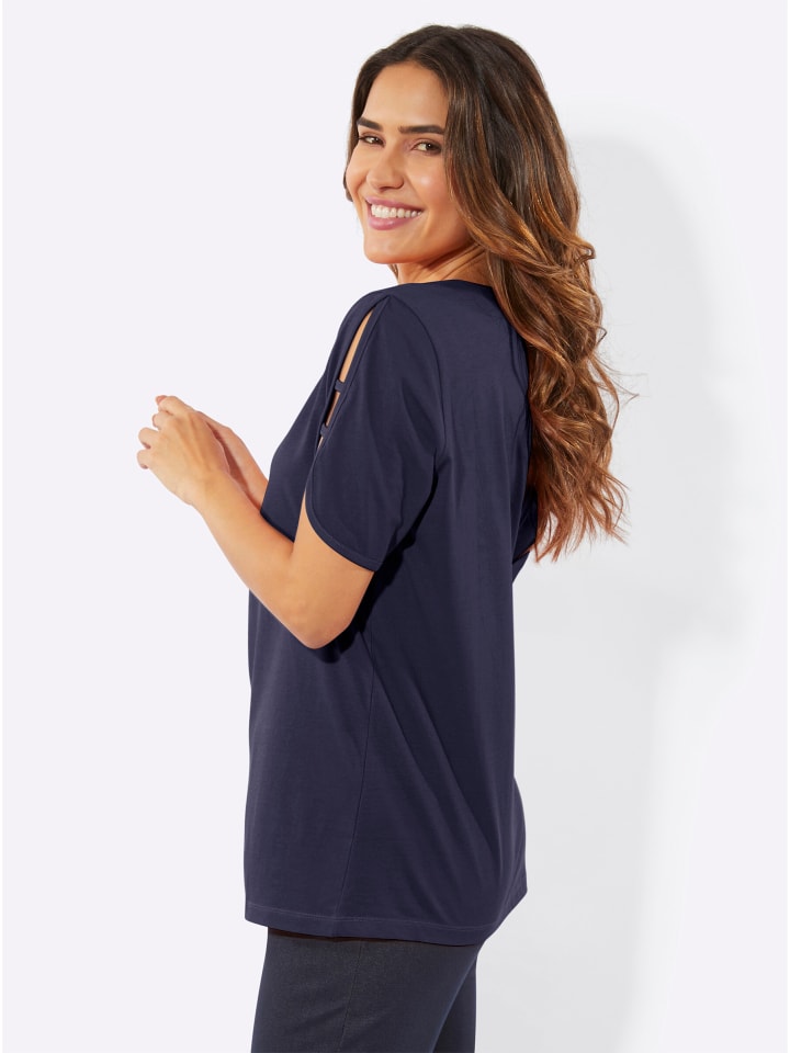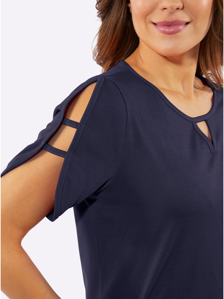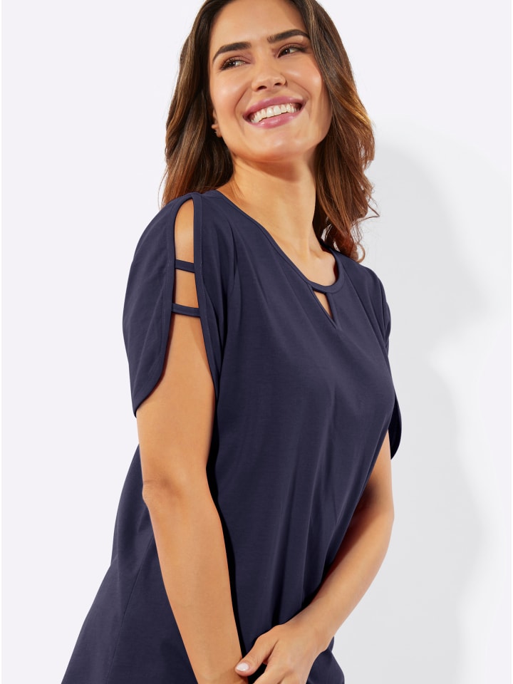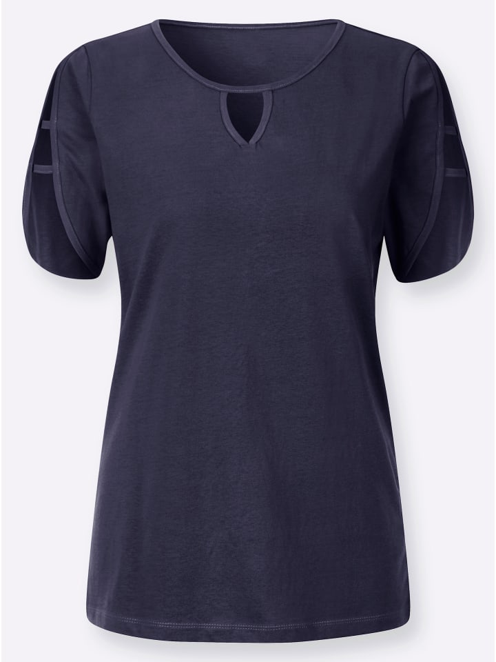 Довольно изысканная рубашка для повседневной носки! Специально разработанные рукава с разрезом и кантом. Также: круглый вырез с кантом и V-образной отделкой.