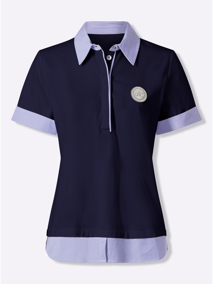 Рубашка поло. Приятная легкая ткань пике. Образ 2 в 1 с полосатой тканой отделкой. Воротник поло с короткой потайной планкой на пуговицах. Короткие рукава с фиксированными отворотами. Небольшой логотип BC на груди. Слегка закругленный подол. Поддерживает инициативу «Хлопок, сделанный в Африке».