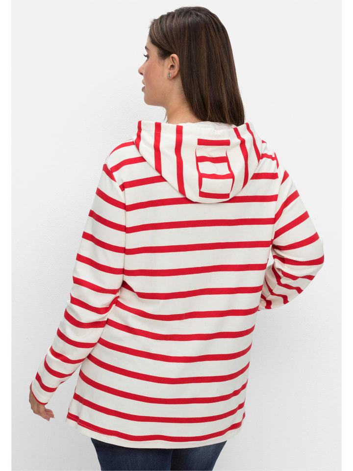 Полосатая рубашка с длинными рукавами в стиле худи. Полоски, окрашенные в пряжу, и капюшон со шнурком создают спортивный, морской образ. Полосатая рубашка - настоящая классика моды, которая должна быть в каждом гардеробе!