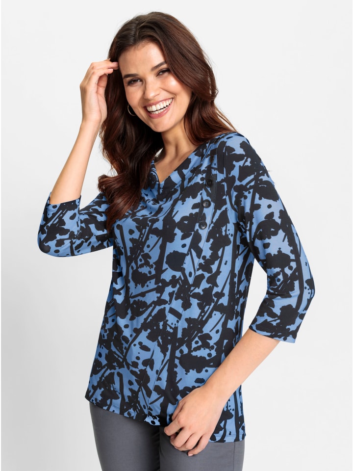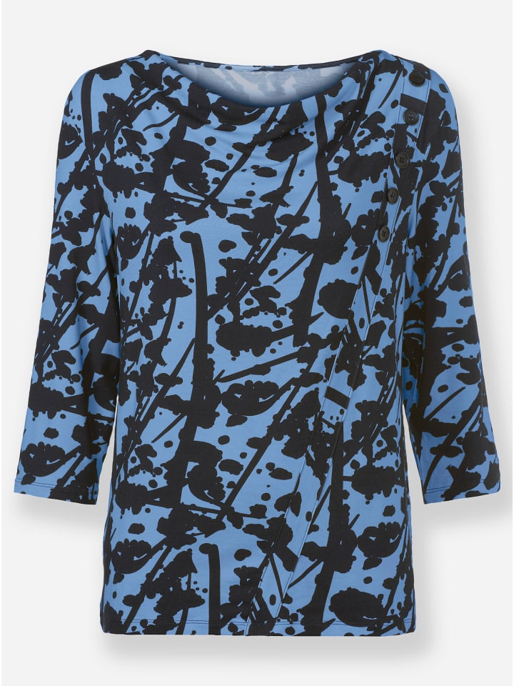 Эта рубашка в тренде благодаря своему оригинальному принту, словно составленному из мазков кисти и цветовых брызг. Мягкий силуэт создается благодаря вырезу водопада и декоративной планке с пуговицами по диагонали спереди. Рукава 3/4. Изготовлена из гладко струящейся вискозы ECOVERO от Lenzing.
