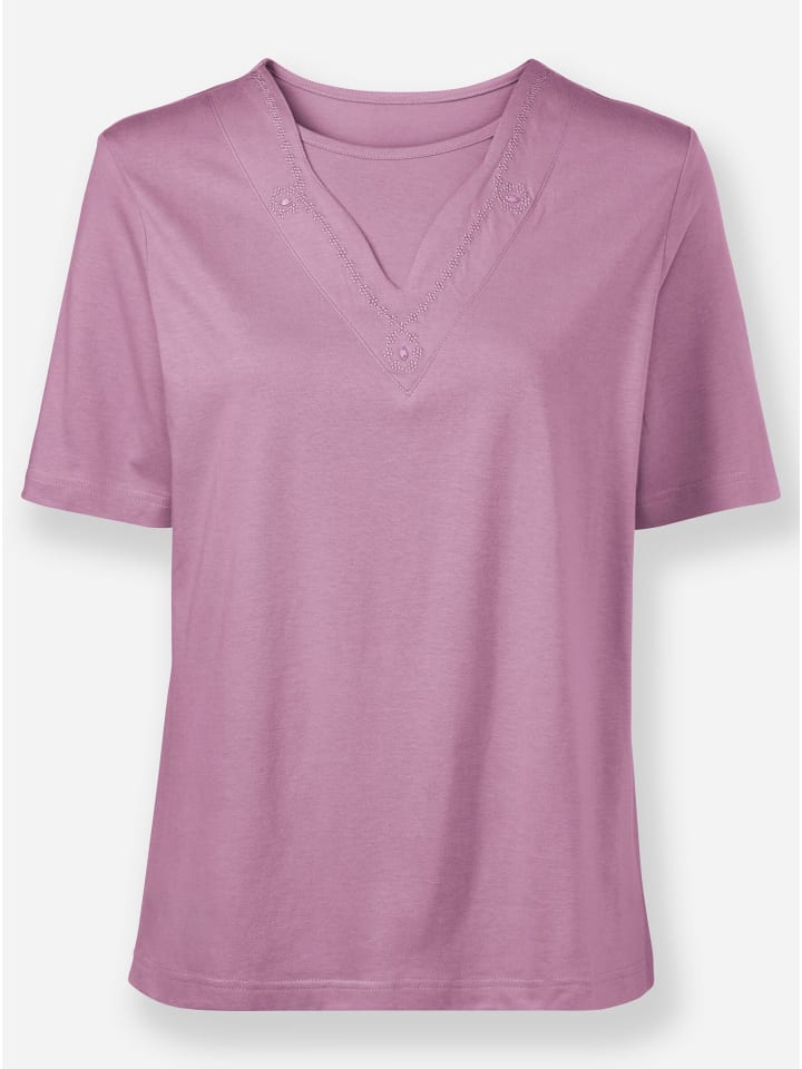Изготовлен из исключительно мягкой смеси хлопка и модала: модный образ «2 в 1». С элегантной вышивкой и стразами вдоль V-образного выреза. Поддерживает инициативу «Хлопок, сделанный в Африке».