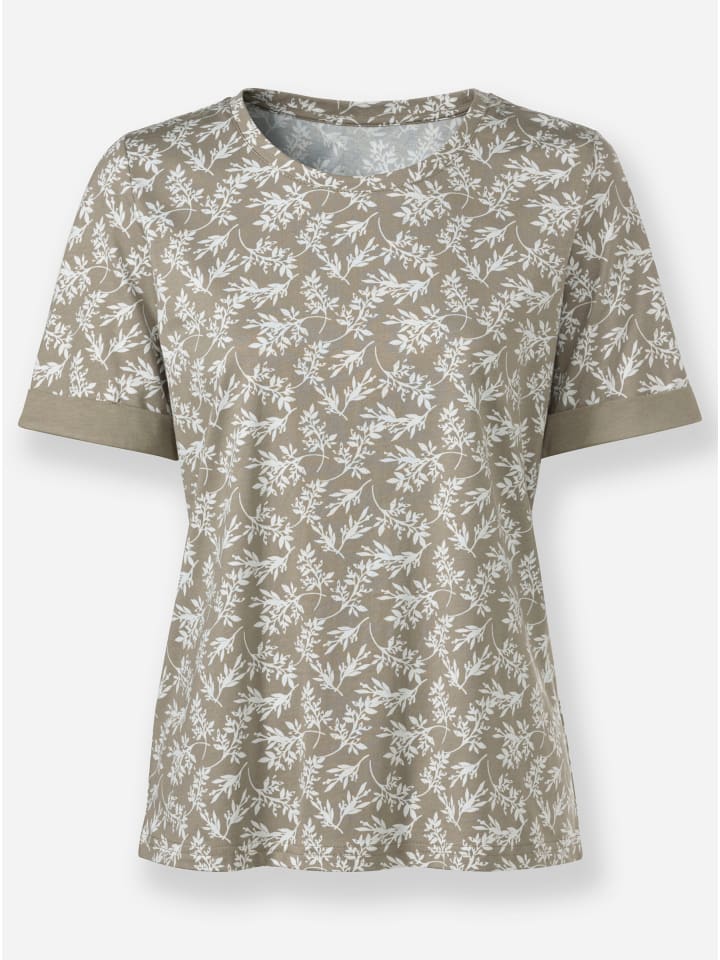 Невероятно универсальная рубашка с принтом и красивым цветочным рисунком. Круглый вырез горловины и короткие рукава с декоративной пришитой однотонной манжетой. Сертифицировано OCS.