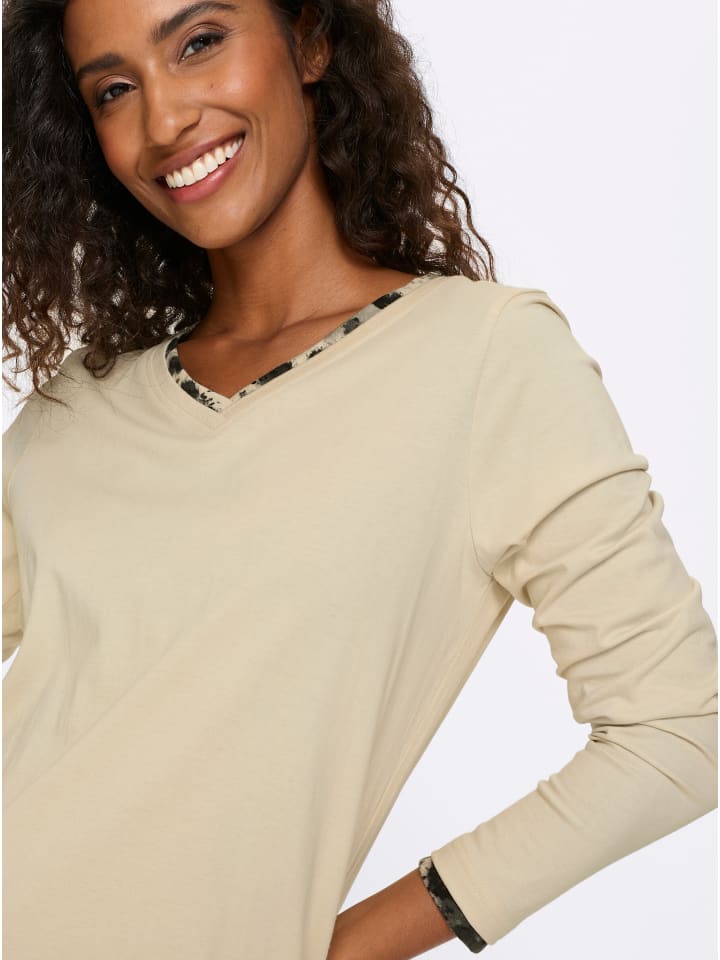Рубашка с длинными рукавами песочного цвета Heine