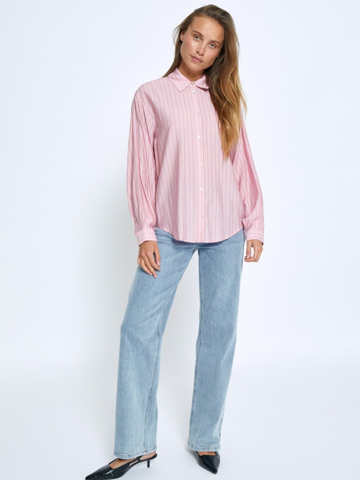 Представляем рубашку PCFelia Striped Shirt от **Peppercorn** - вневременную модель, гармонично сочетающую классический дизайн и современную элегантность. Строгий, приталенный воротник добавит изысканности любому образу, а длинные рукава с манжетами на пуговицах обеспечат изысканный вид и удобную посадку. Тонкие полоски добавят нотку сдержанной элегантности, делая рубашку универсальным выбором как для повседневной носки, так и для работы. Изготовленная из шелковистой смесовой ткани, она красиво драпируется и дарит ощущение роскоши. Сочетайте ее с любимыми джинсами для непринужденного отдыха или заправьте в строгие брюки для создания элегантного офисного образа.